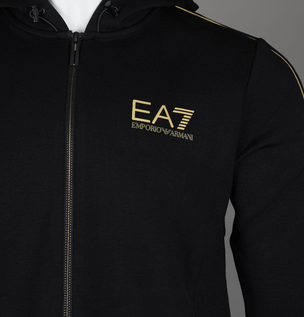 EA7 Gold Label Viscose Blend Full Zip Hooded Sweatshirt Black/Gold