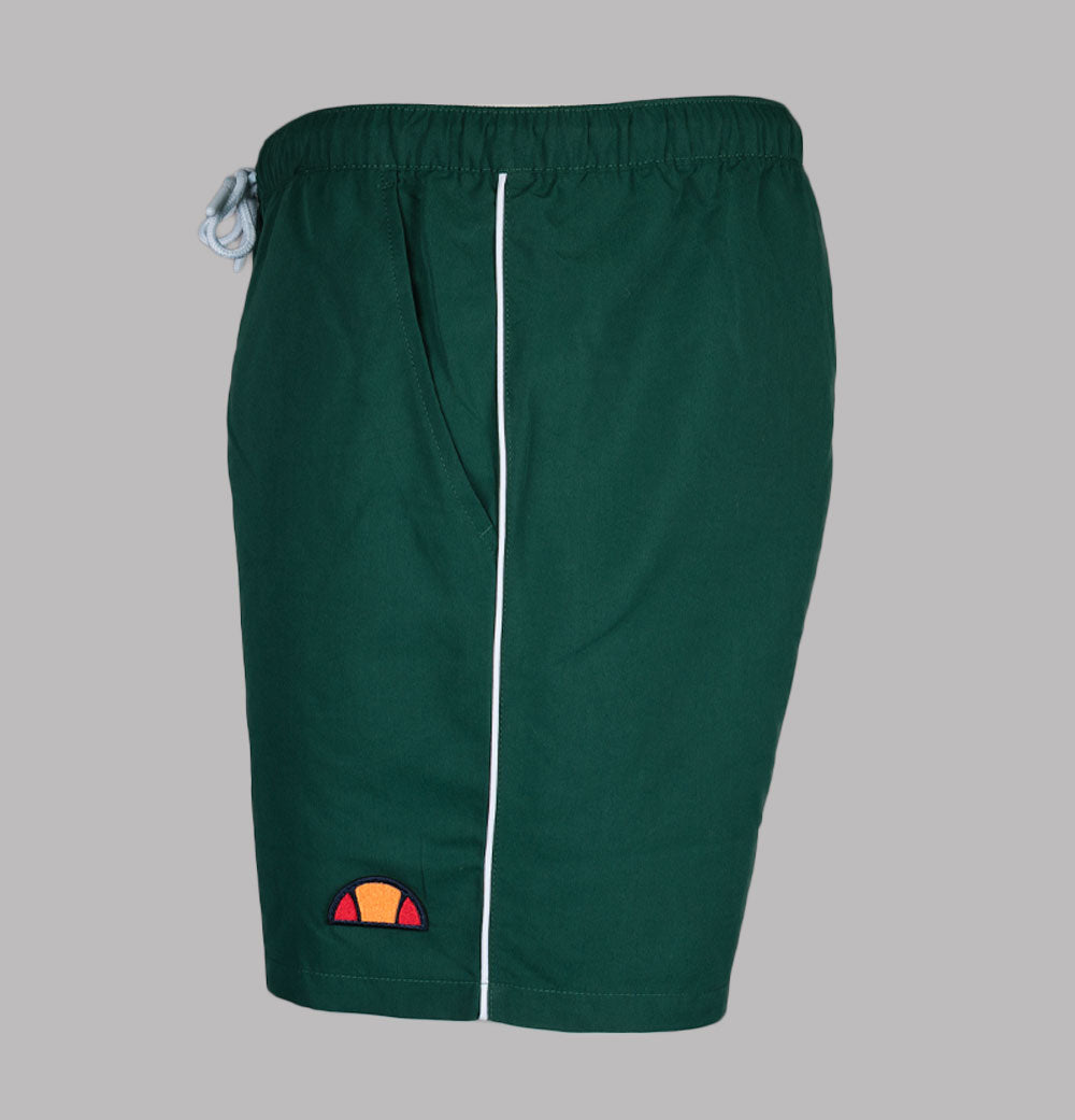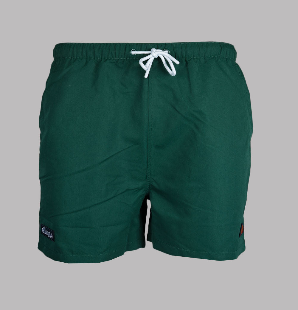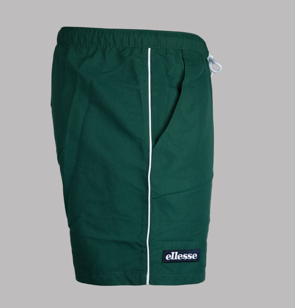 Ellesse Dem Slackers swim shorts in Dark Green. Lightweight polyester fabric. Adjustable draw cord waistband. Front pockets. White piping detail. Embroidered Ellesse branding. Fully mesh lined. Regular fit waist with a short inseam. 100% polyester.