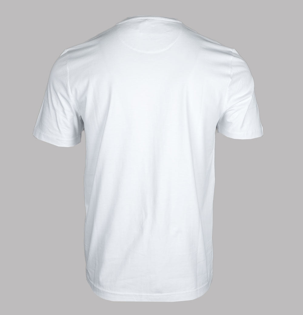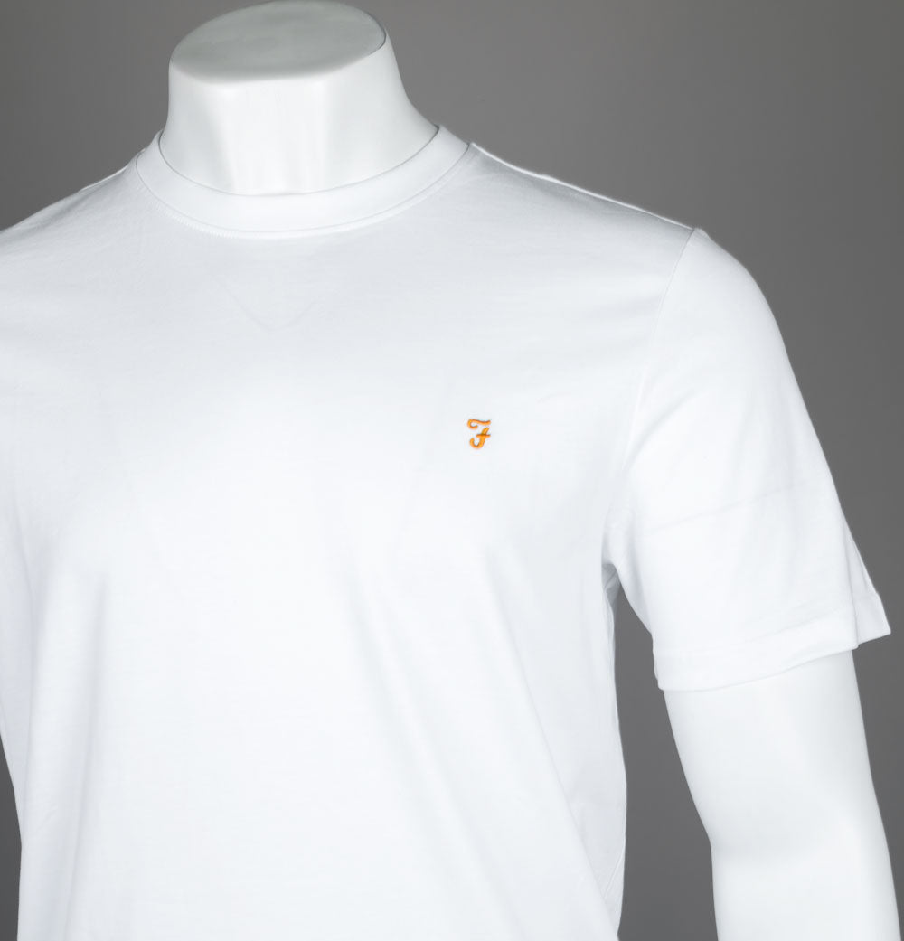 Farah short sleeve Danny t-shirt. White organic cotton jersey fabric. Ribbed crew neck. Embroidered signature Farah logo on the chest. Regular fit. 100% organic cotton.
