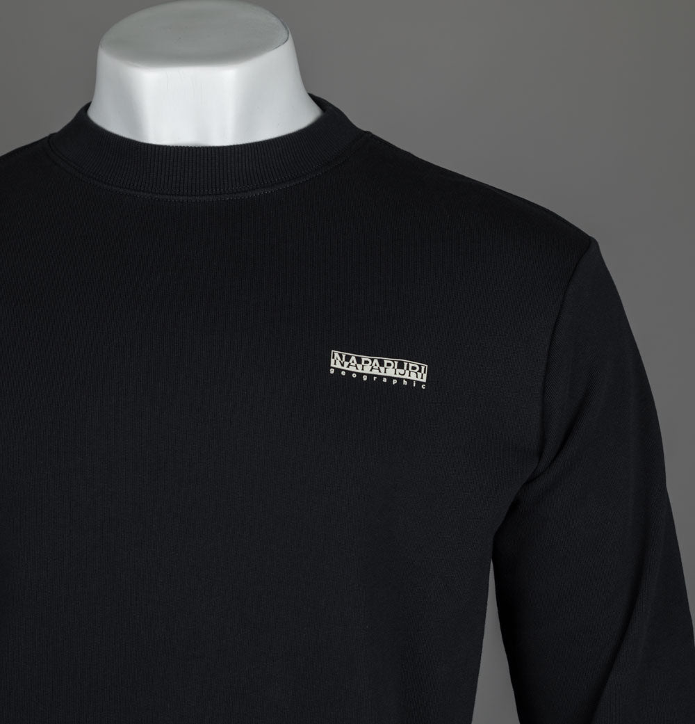 Napapijri Small box sweatshirt in Black Beauty. Loopback cotton jersey fabric. Rubberised signature Napapijri branding on the chest. Ribbed crew neck, sleeve cuffs and hem. Relaxed fit. 100% cotton.