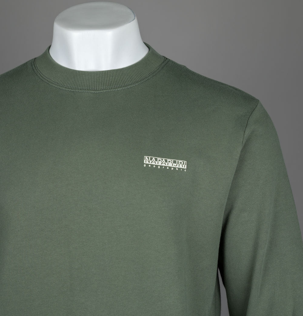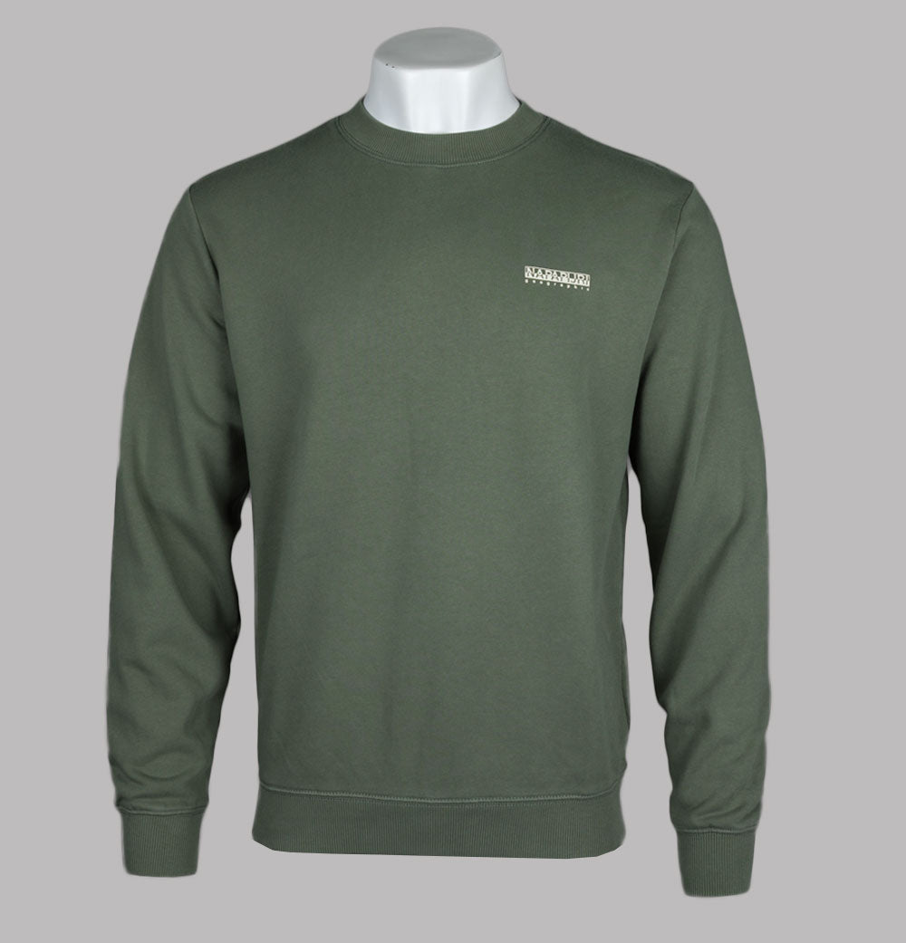 Napapijri Small box sweatshirt in Tea Leaf. Loopback cotton jersey fabric. Rubberised signature Napapijri branding on the chest. Ribbed crew neck, sleeve cuffs and hem. Relaxed fit. 100% cotton.