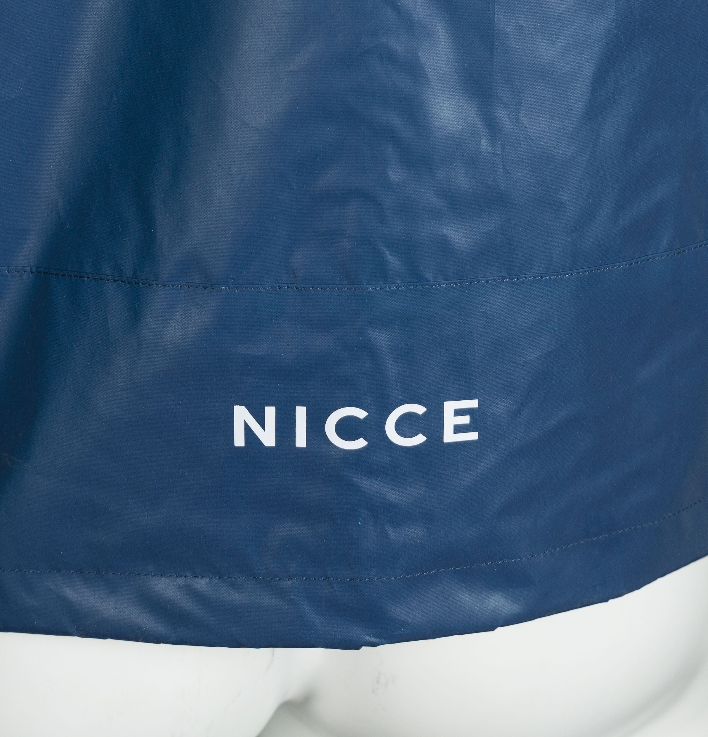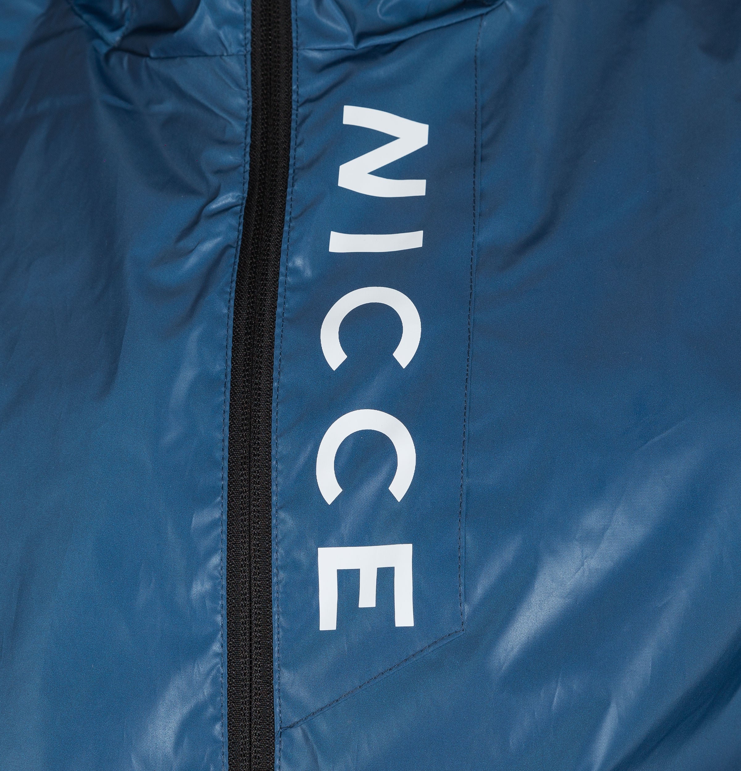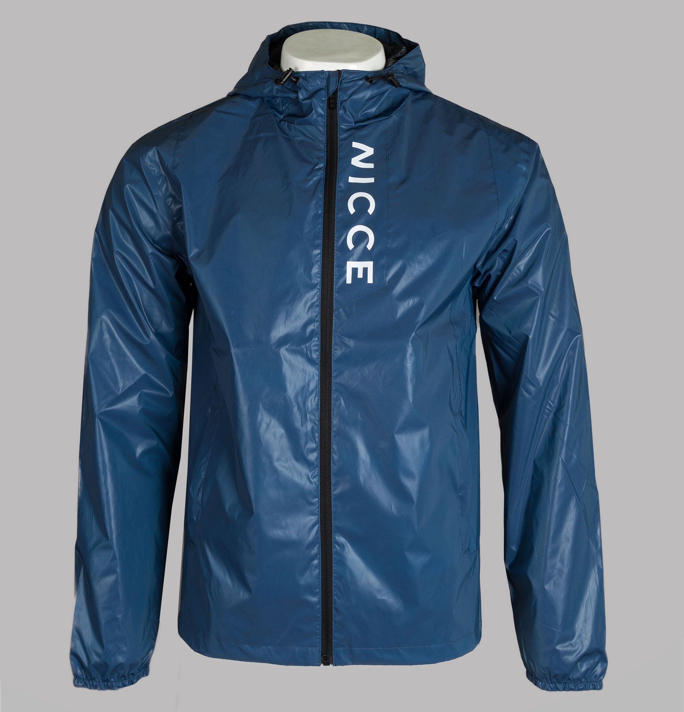 Nicce Verto reflective jacket. Navy Blue reflective polyester fabric. Full front zip fastening with a Nicce branded zipper. Adjustable bungee cord hood with mesh lining. Front zip pockets. White Nicce logo printed on the chest and on the lower of the back. Small Nicce branded tag on the seam. Elasticated sleeve cuffs. One internal pocket. Regular fit. 100% polyester.