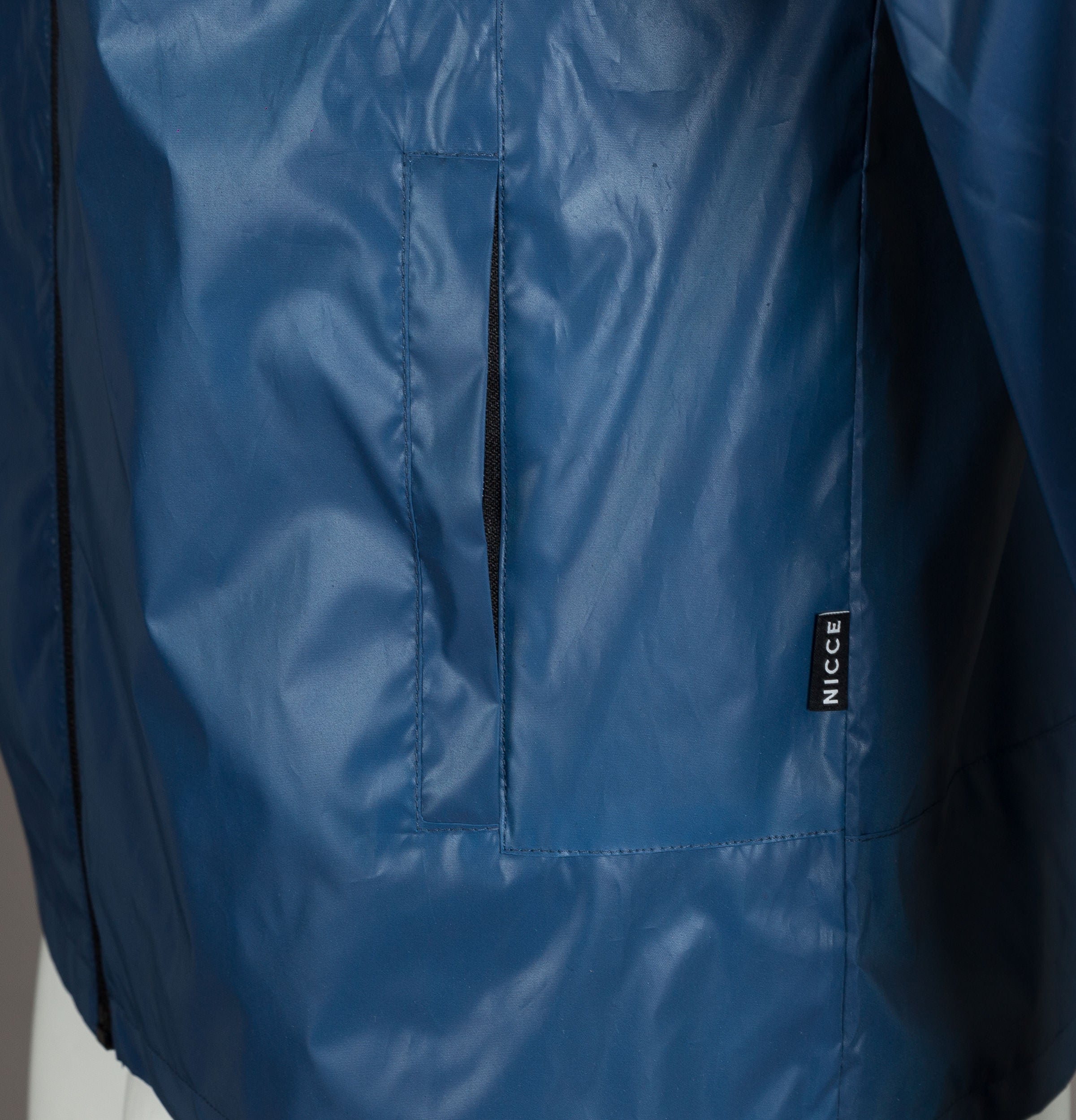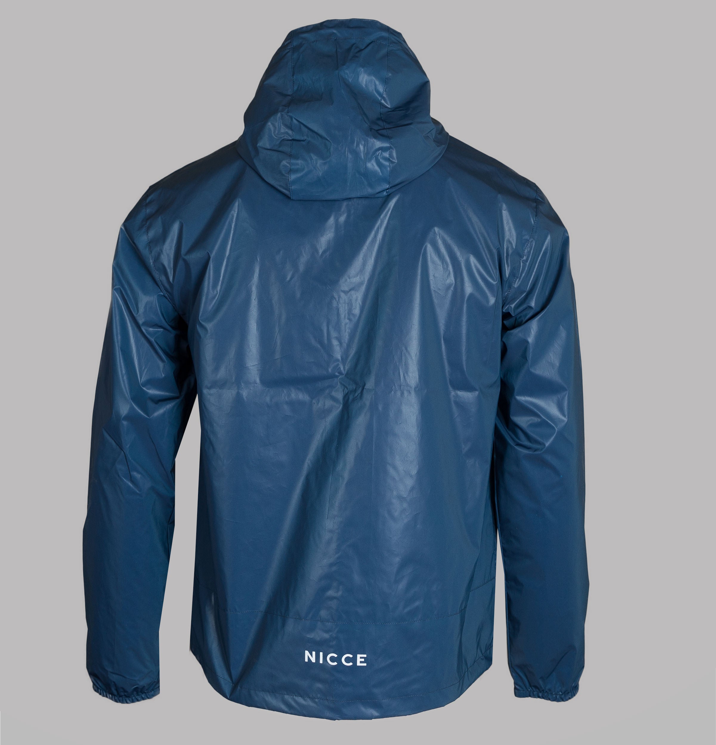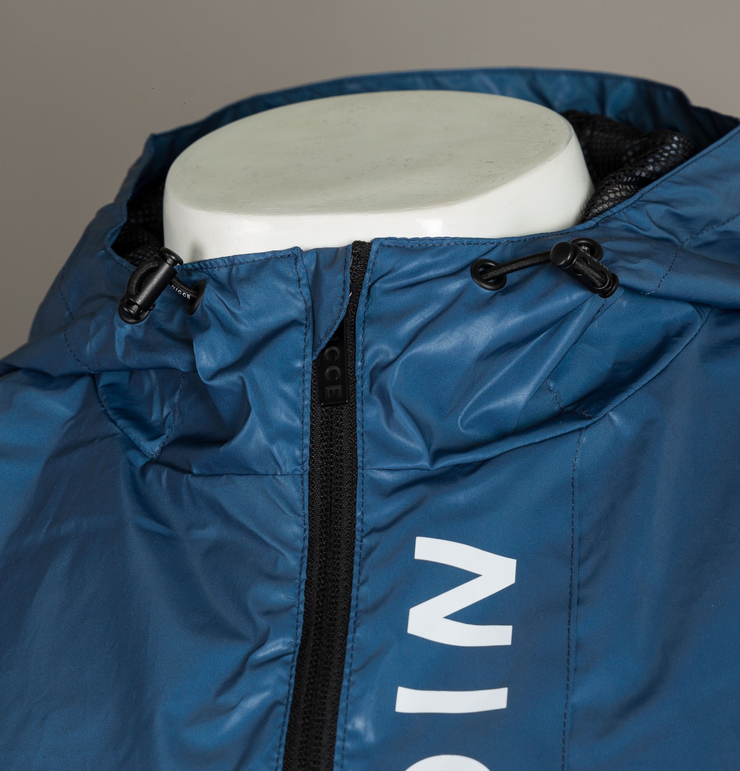 Nicce Verto reflective jacket. Navy Blue reflective polyester fabric. Full front zip fastening with a Nicce branded zipper. Adjustable bungee cord hood with mesh lining. Front zip pockets. White Nicce logo printed on the chest and on the lower of the back. Small Nicce branded tag on the seam. Elasticated sleeve cuffs. One internal pocket. Regular fit. 100% polyester.