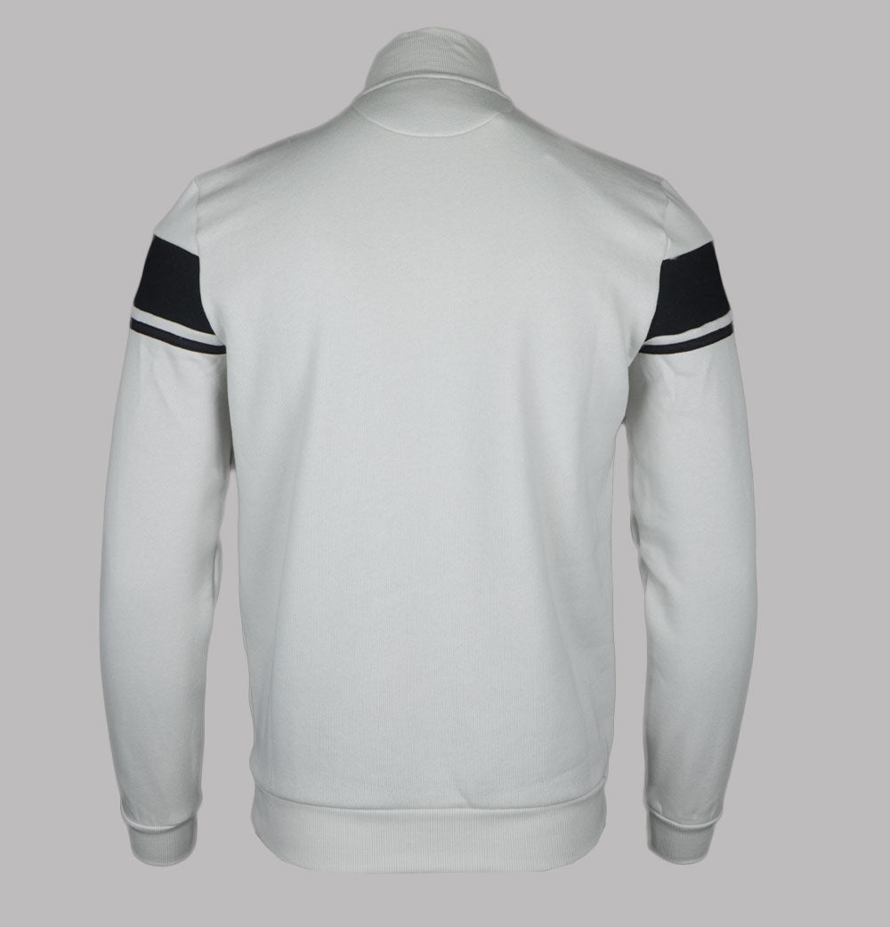Sergio Tacchini Damarindo 1/4 zip sweatshirt in Glacier Grey/Black. Soft fleece back cotton jersey fabric. 1/4 zip with a Sergio Tacchini branded zipper. Panel detail on the sleeves. Sergio Tacchini logo on the chest. Ribbed collar, sleeve cuffs and hem. Slim fit. 80% cotton, 20% polyester.