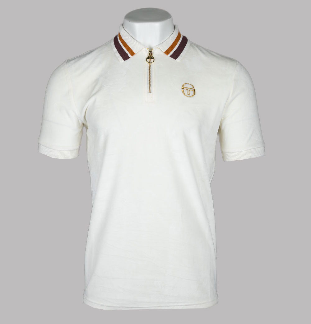 Sergio Tacchini Mahony Velour 1/4 Zip Polo Shirt Gardenia/Gold