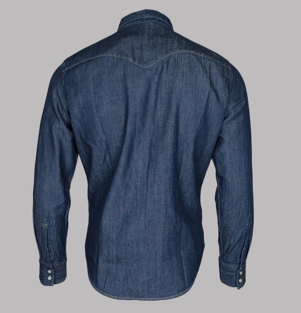 Levi's® Barstow western denim shirt. Red Cast Rinse wash Blue denim fabric. Front snap button placket. Classic western collar and snap flap chest pockets. Double snap button sleeve cuffs. Levi's® Red tab on the chest pocket. Standard fit with a curved hem. 100% cotton.