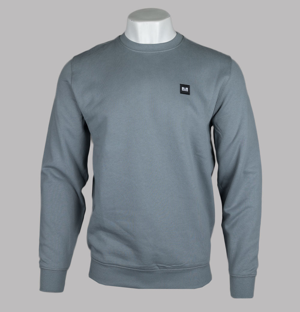Weekend Offender Ferrer fleece back sweatshirt in Porpoise Grey. Brushed back cotton fleece fabric. Ribbed crew neck, sleeve cuffs and hem. Small embroidered Weekend Offender badge. Regular fit. 100% cotton.