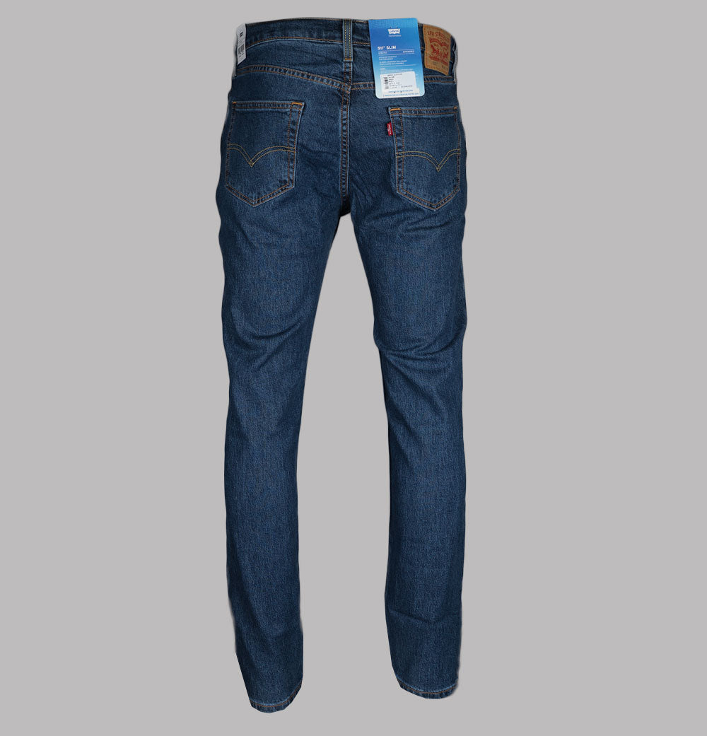 Levi's® 511™ slim fit jeans in Calm N Cool. Washed Blue lightweight breathable denim. Classic 5 pocket style. Zip fly with a Levi's® branded top button. Iconic Levi's® Red tab on the back pocket. Brown Levi's® branded patch on the back of the waistband. Branded metal trims. Gold stitch detail. Belt loops. Sits below the waist with a slim fit from hip to ankle. 84% cotton, 15% polyester, 1% elastane.