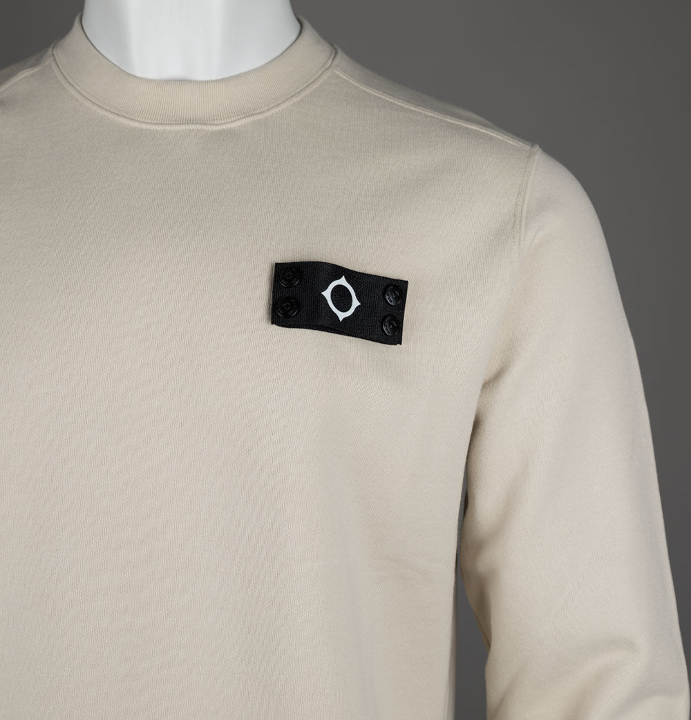 Ma.Strum Neo crew neck sweatshirt in Burnt Cream. Premium loopback cotton jersey fabric. Ribbed crew neck, sleeve cuffs and hem. Detachable Ma.Strum Compass ID badge on the chest. Tonal stitch detail. Regular fit. 100% cotton.