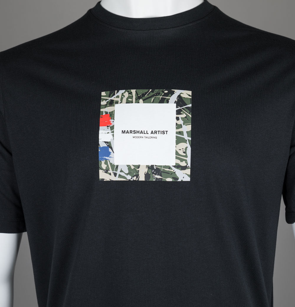 Marshall Artist short sleeve Adored box logo t-shirt in Black. Premium cotton jersey fabric. Ribbed crew neck. Marshall Artist Adored box logo print on the chest. Regular fit. 100% cotton.