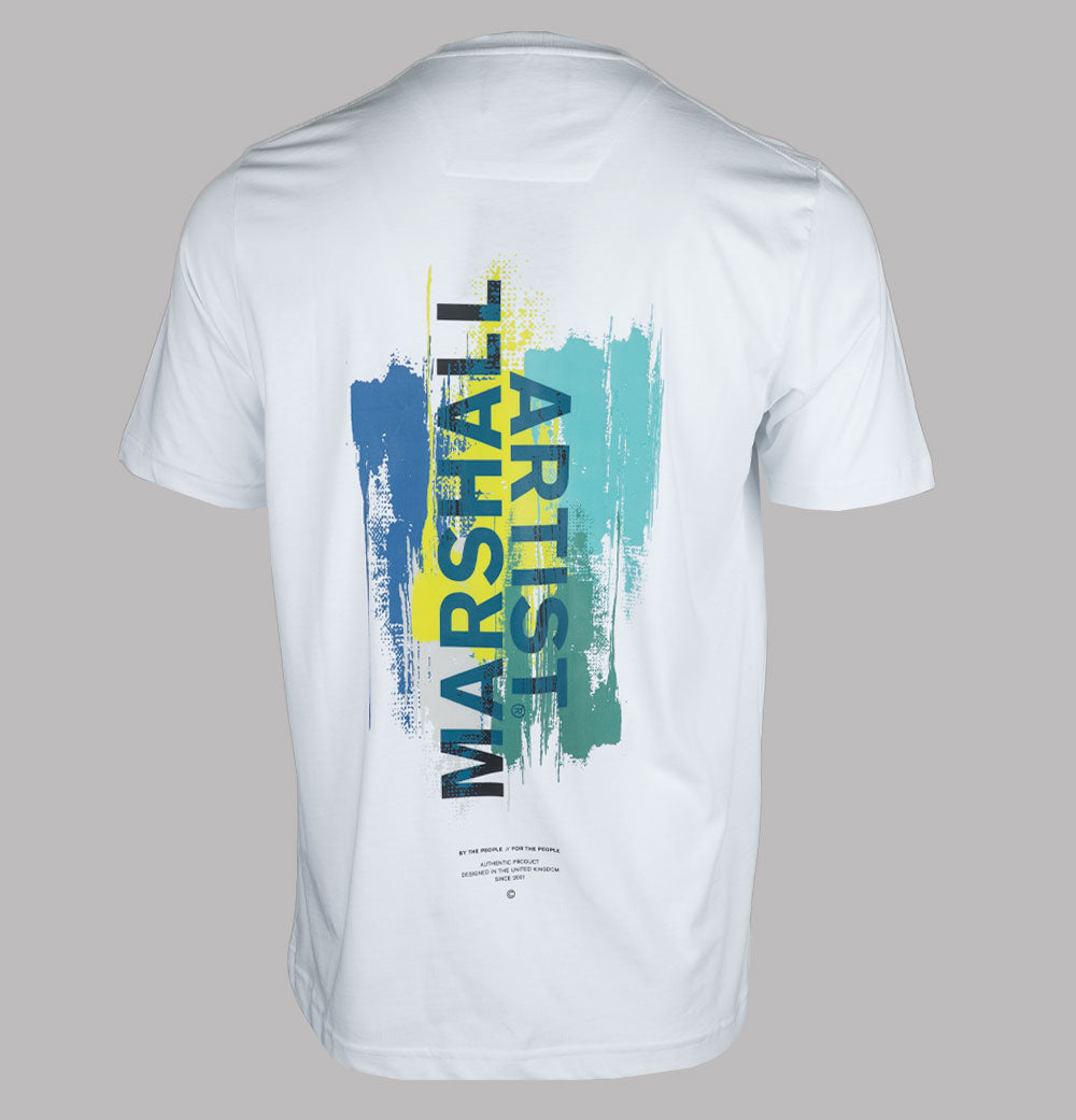 Marshall Artist short sleeve Chroma t-shirt in White. Premium cotton jersey fabric. Ribbed crew neck. Marshall Artist Chroma graphic print on the chest and large graphic print on the back. Regular fit. 100% cotton.