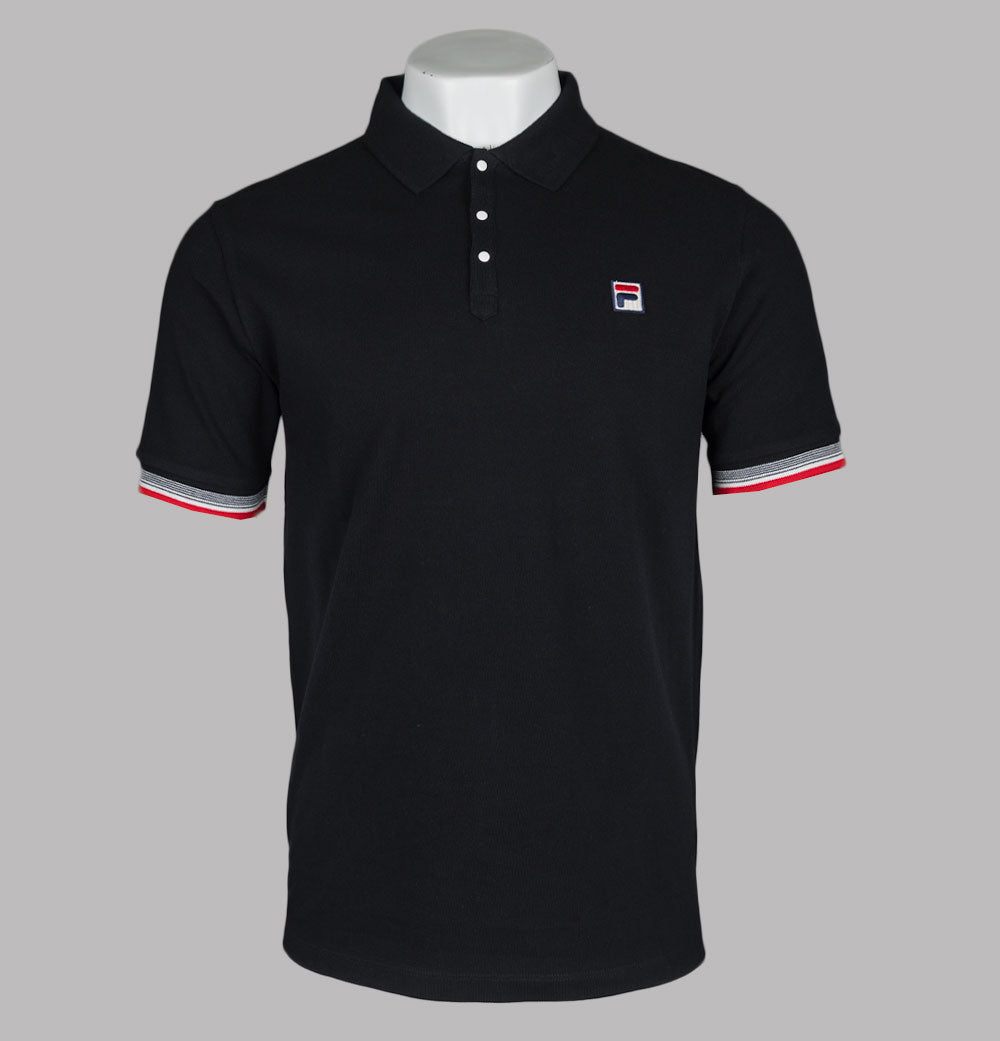 Fila Vintage Zev Cuff Detail Polo Shirt Black/Fila Red/Gardenia