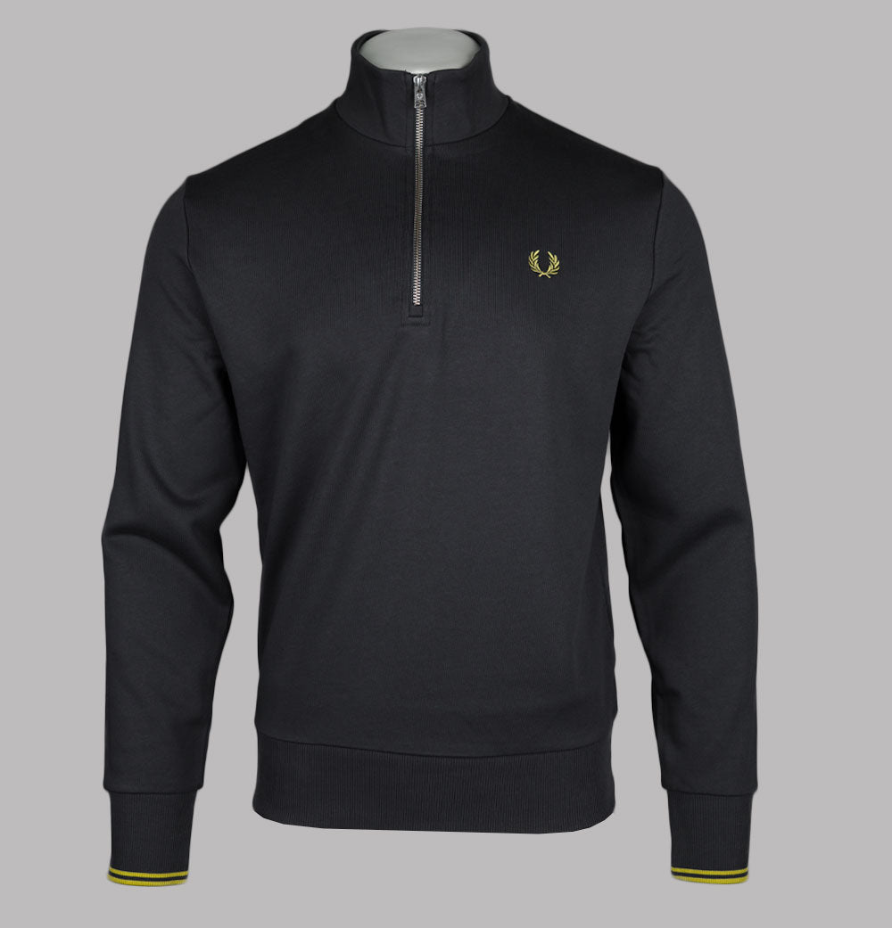 Fred Perry Half Zip Sweatshirt Anchor Grey/Tennis Ball Yellow