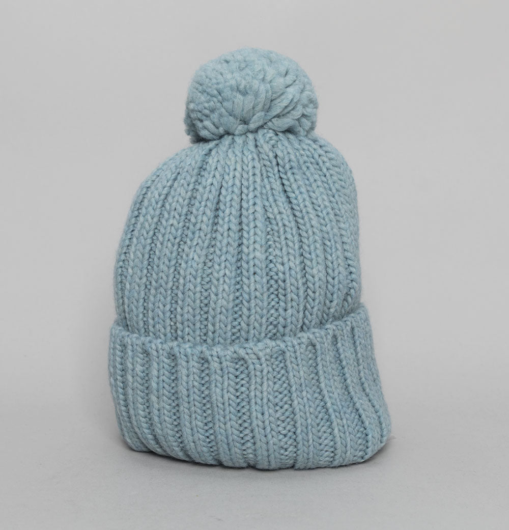 Napapijri Semiury bobble beanie in Faded Denim. Chunky knitted fabric. Fold over front with knitted Norwegian flag. Finished with a top bobble. One size fits most. 75% acrylic, 10% wool, 10% polyamide, 5% viscose.
