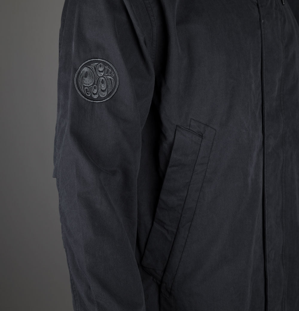 Pretty Green Feltham parka in Black. Cotton/nylon blend fabric. Front zip up fastening with a press stud placket. Draw cord hood with house paisley lining. Two front welt pockets with press stud fastening. Embroidered Pretty Green logo. Adjustable button sleeve cuffs. Regular fit. 65% cotton, 35% nylon