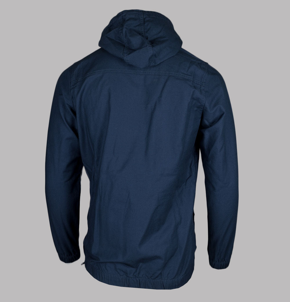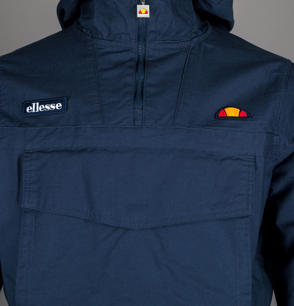 Ellesse Mont 3 over the head jacket in Navy. Premium cotton twill fabric. Front 1/4 zip and side zip. Large front pouch pocket. Front press stud pockets. Bungee cord adjustable hood. Ellesse branding. Elasticated sleeve cuffs and hem. Regular fit. 100% cotton.