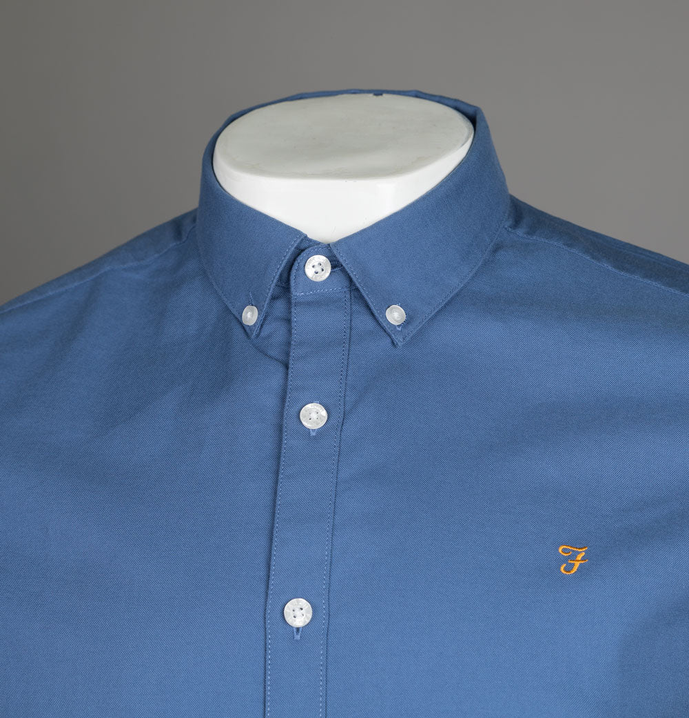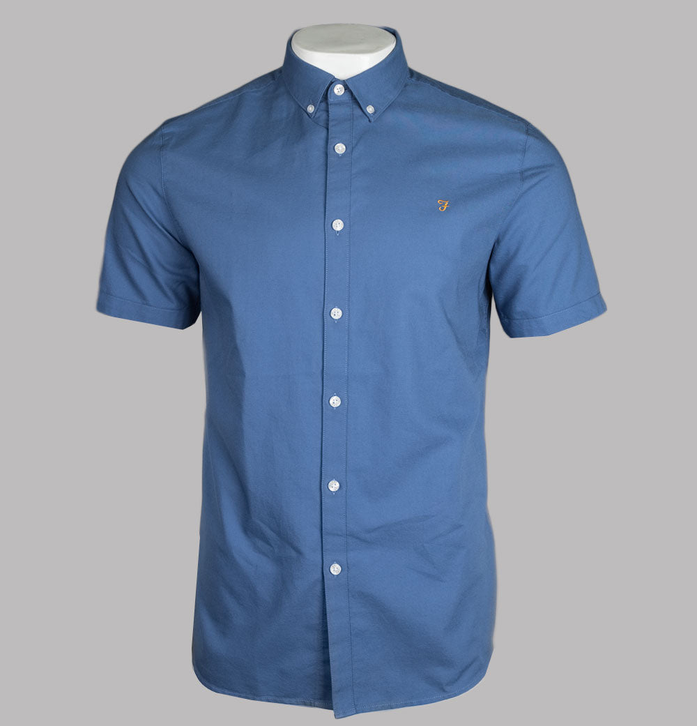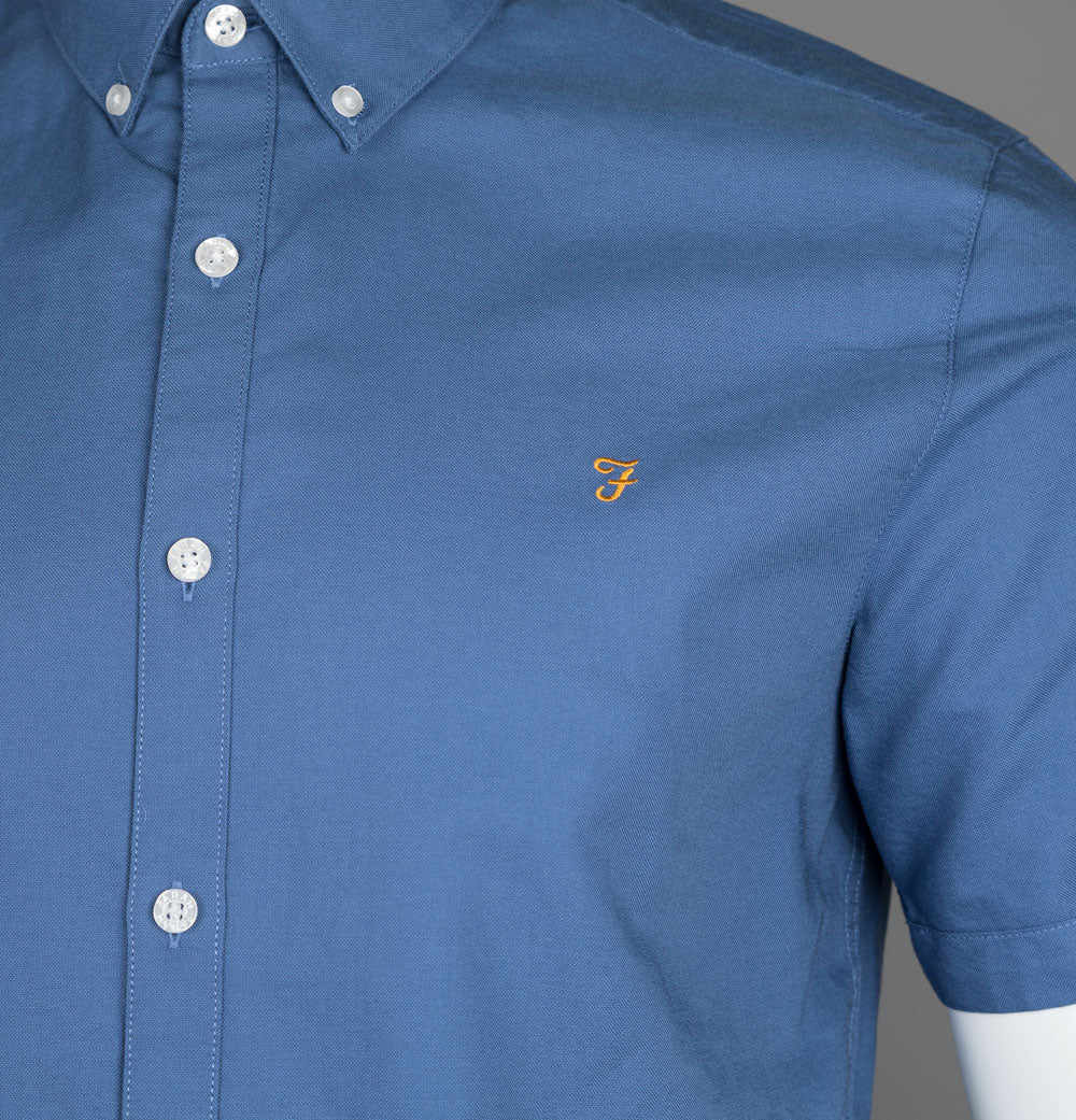 Farah Brewer Slim Fit S/S Oxford Shirt Caribbean Blue