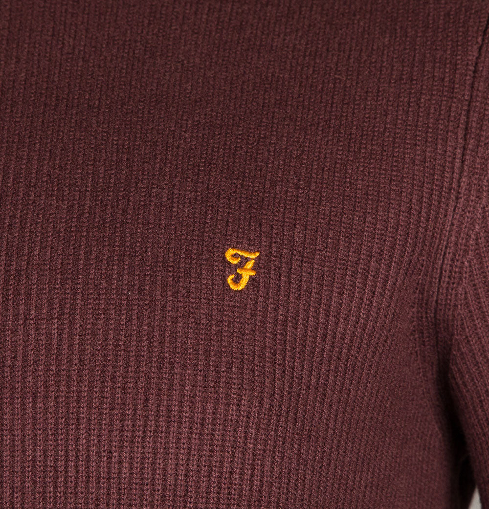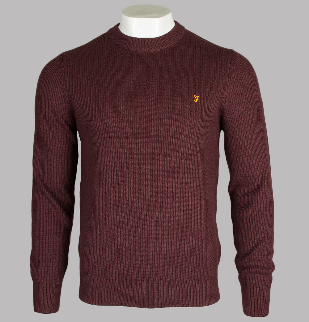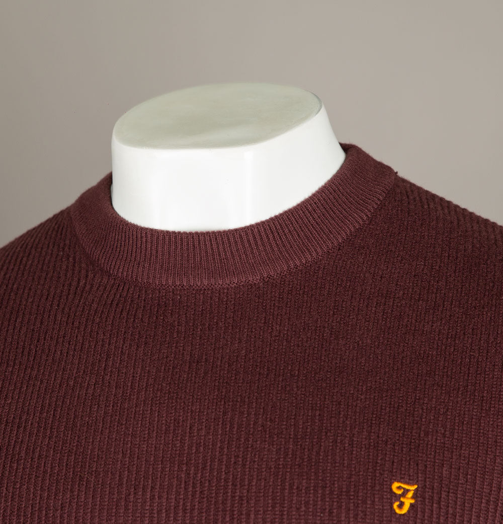Farah Horace Crew Neck Knit Jumper Burgundy