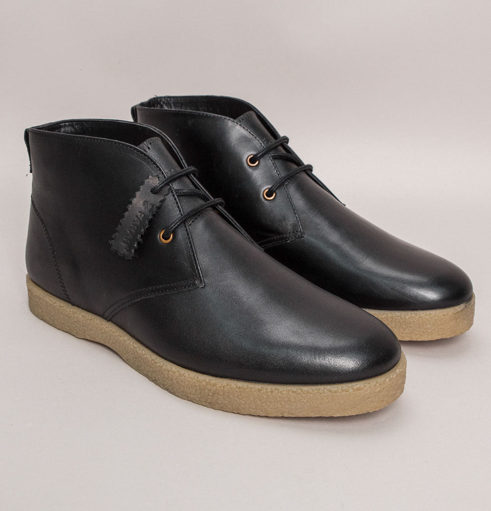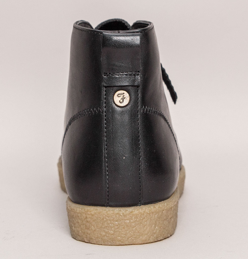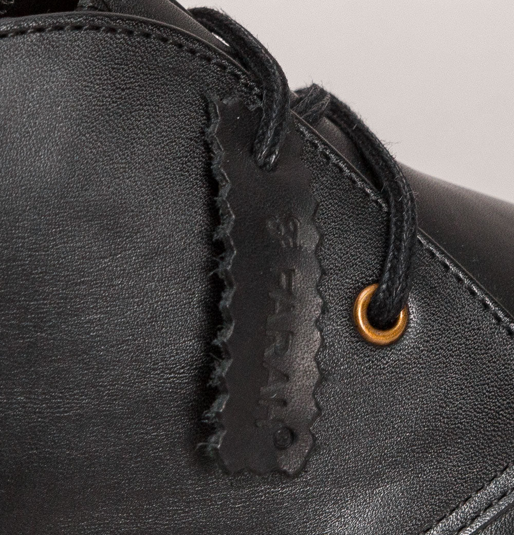 Farah Jonah leather desert ankle boots. Black premium leather uppers. Lace up fronts with rounded laces. Small Farah branded tag on the back. Embossed Farah logo on the tongue. Tonal stitch detail. Chunky rubber sole unit. All UK standard sizes.
