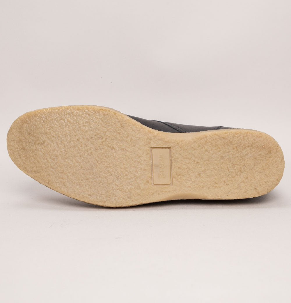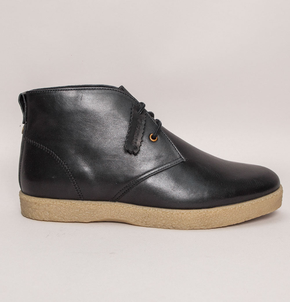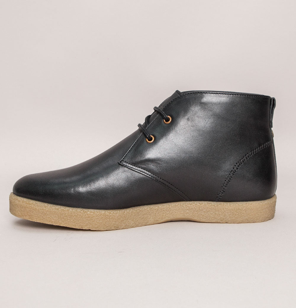 Farah Jonah leather desert ankle boots. Black premium leather uppers. Lace up fronts with rounded laces. Small Farah branded tag on the back. Embossed Farah logo on the tongue. Tonal stitch detail. Chunky rubber sole unit. All UK standard sizes.