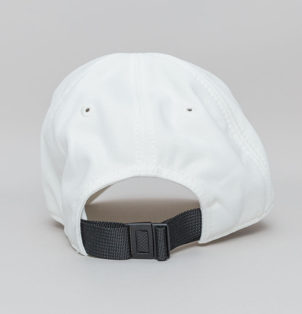 Fred Perry arch branded tricot cap. Snow White polyester tricot fabric. Classic 6 panel design with embroidered air vent holes. Curved peak. Fred Perry arch branding embroidery in Black. Grosgrain strap with plastic adjuster. Tonal stitch detail. One size. 54% polyester, 46% cotton.