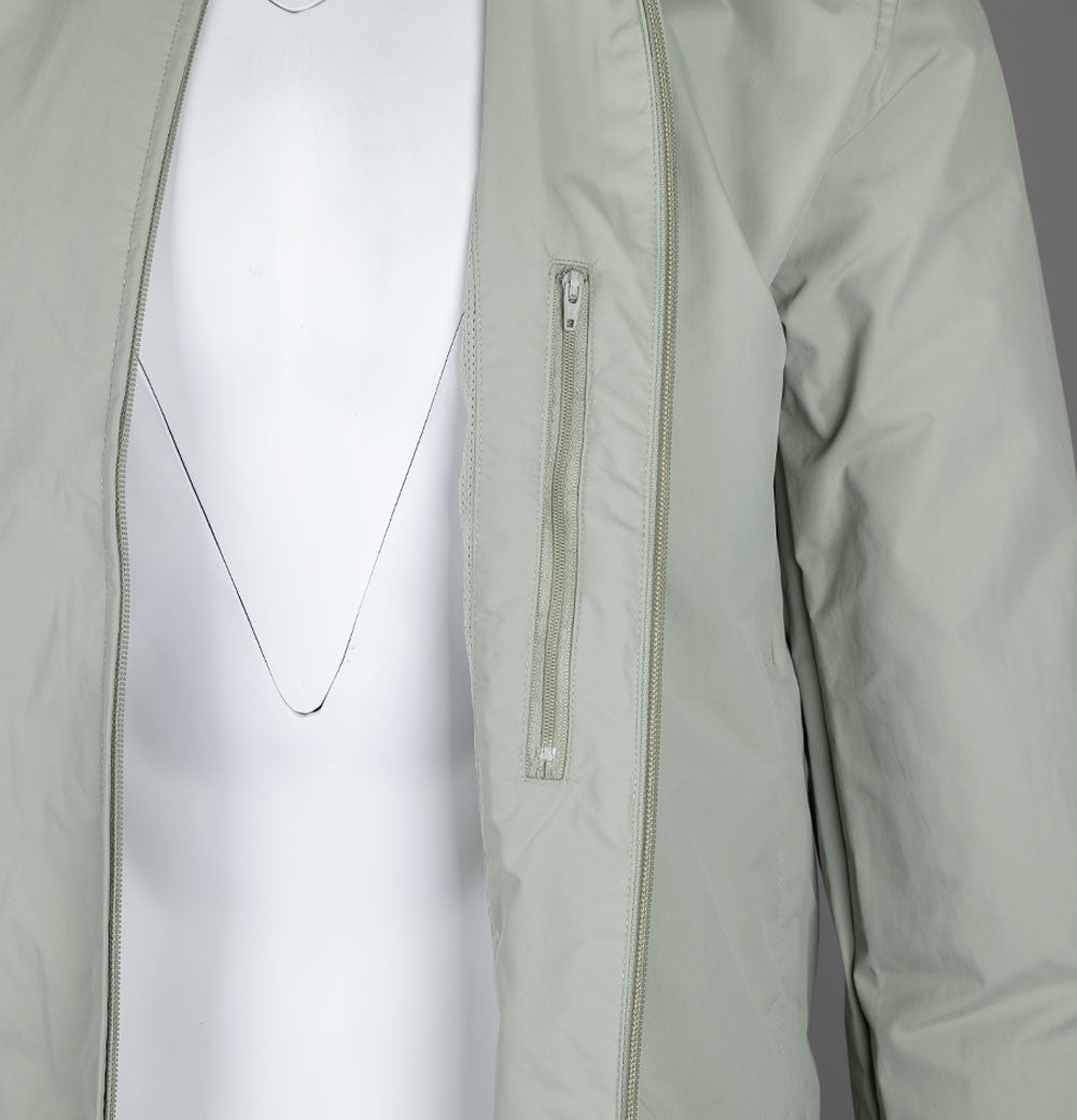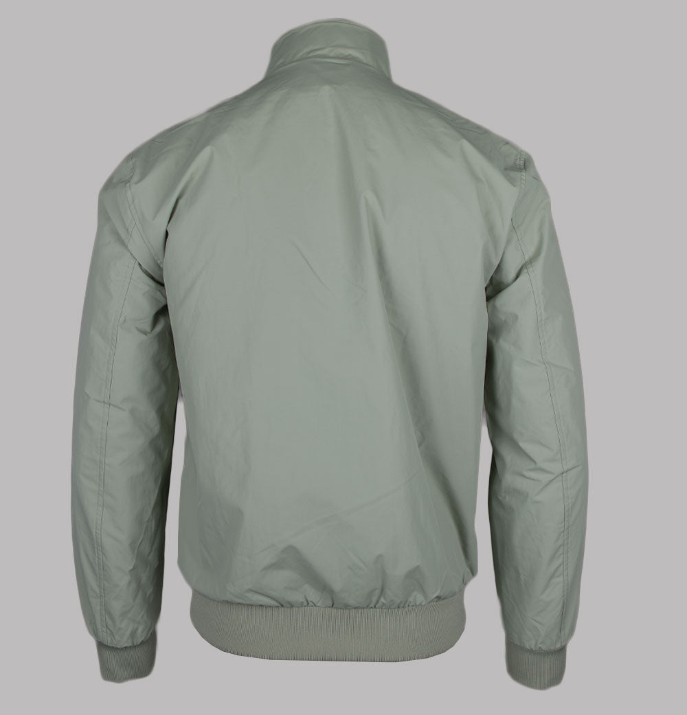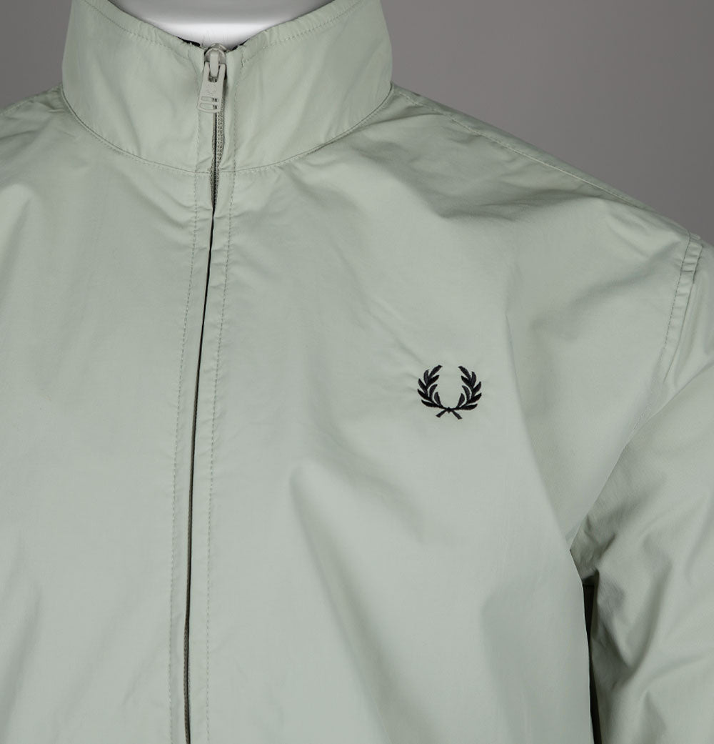 Fred Perry Brentham jacket in Seagrass/Black. Lightweight hardwearing durable nylon twill fabric. Full mesh lining. Front zip up fastening with a Fred Perry branded two way zipper. Ribbed sleeve cuffs and hem. Twin stripe detail inside the collar. Two front pockets. Embroidered Laurel Wreath. One internal zip pocket. Regular fit. 100% polyamide.