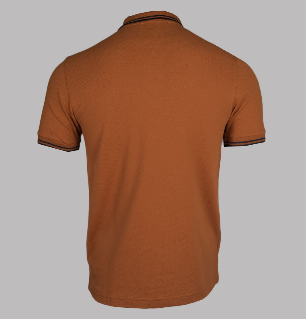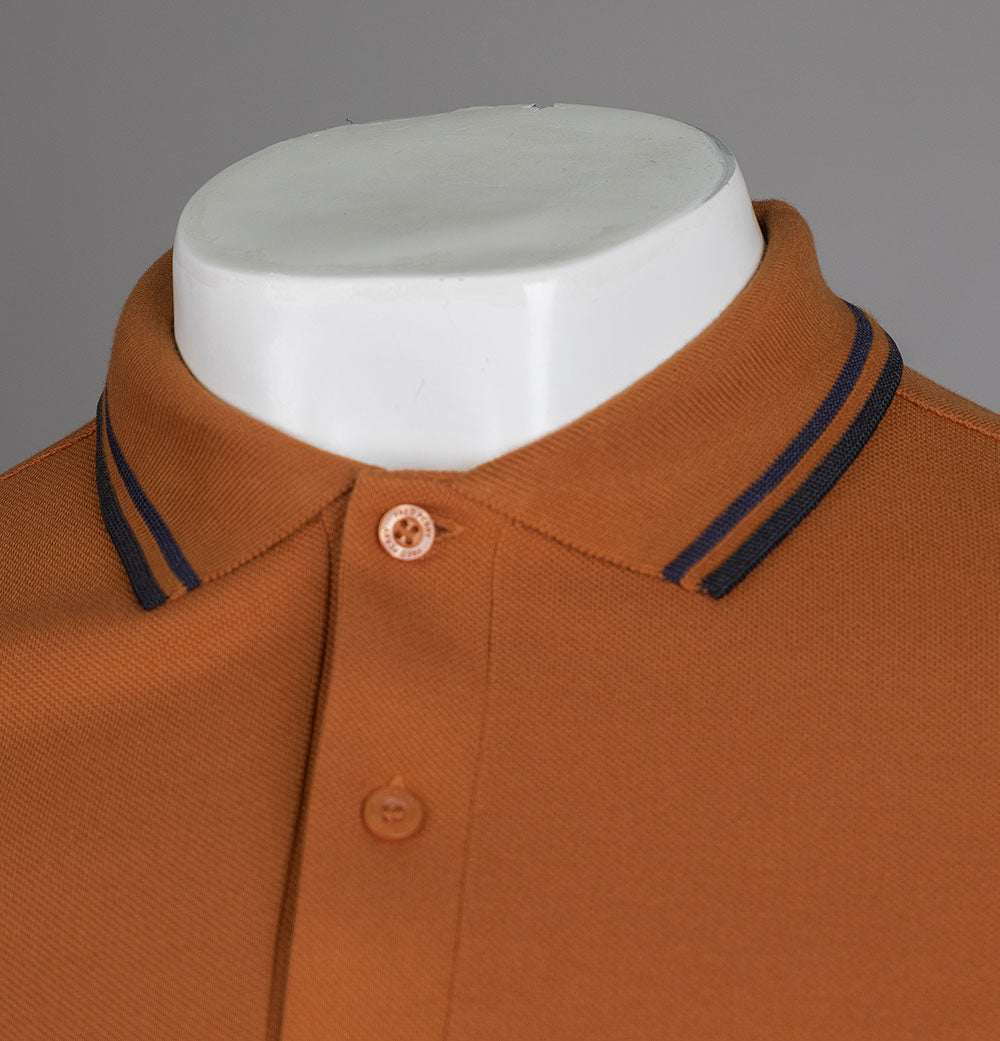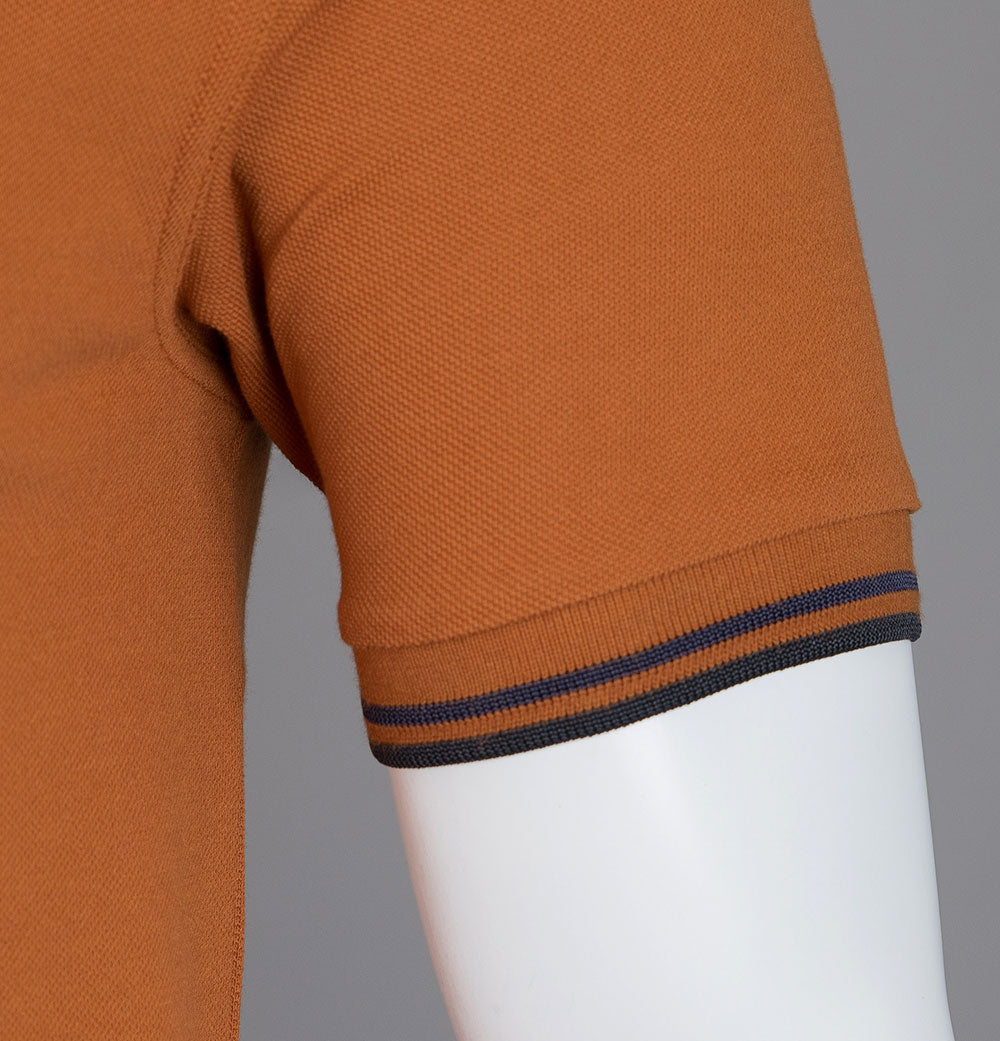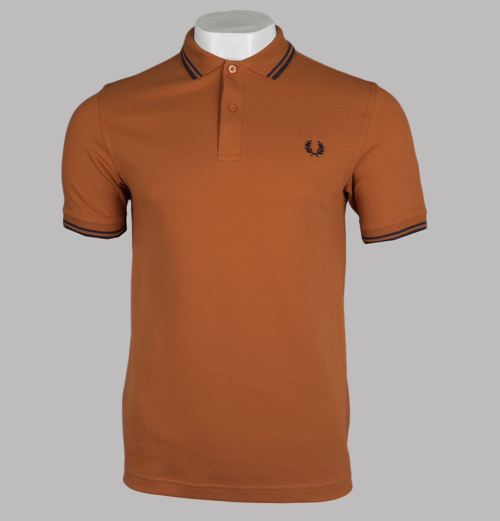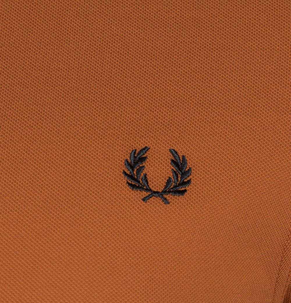 Fred Perry M3600 twin tipped short sleeve polo shirt. Nut Flake premium cotton pique fabric. Two button placket with signature Fred Perry branded buttons. Twin tipped collar and arm cuffs in Navy and Black. Embroidered Laurel Wreath on the chest in Black. Regular fit with a straight hem. 100% cotton pique.
