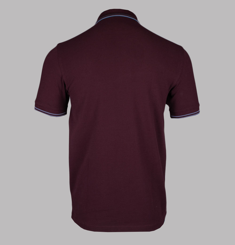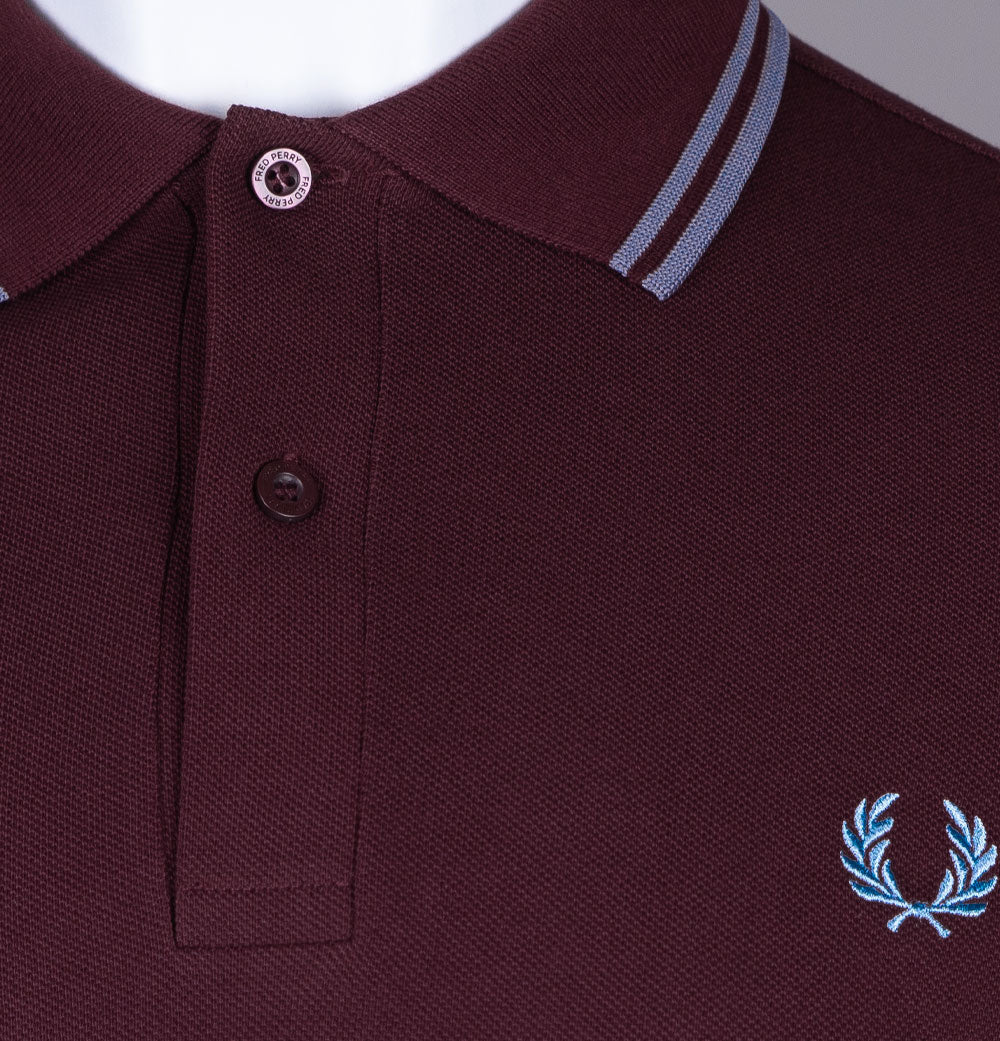Fred Perry M3600 twin tipped short sleeve polo shirt in Oxblood/Stockport Blue. Premium cotton pique fabric. Ribbed collar and sleeve cuffs with twin tipped detail. Two button placket with Fred Perry branded buttons. Embroidered Laurel Wreath. Regular fit. 100% cotton.