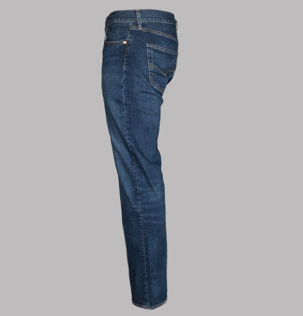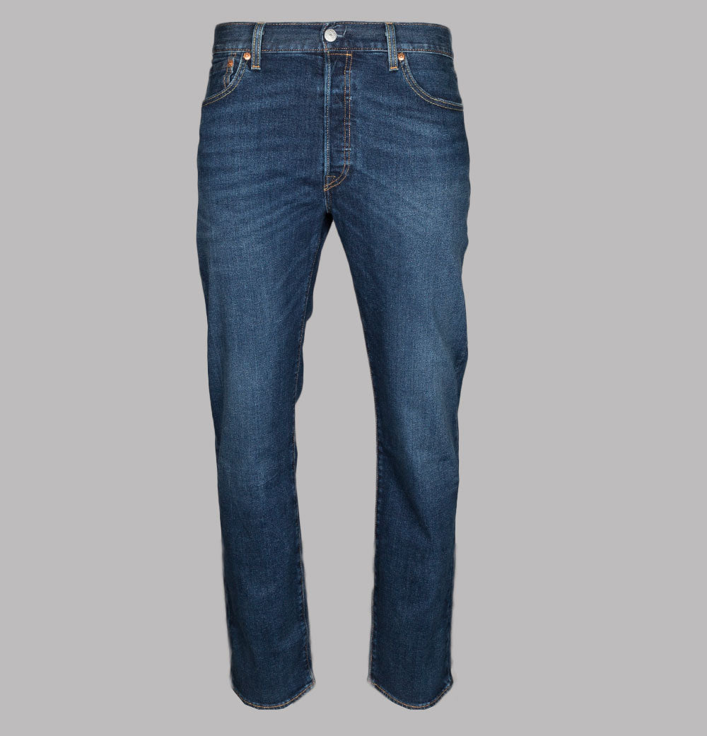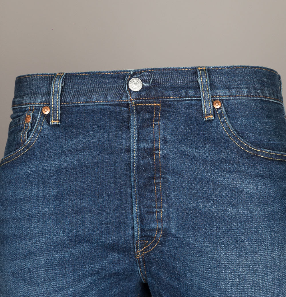 Levi's® 501® original fit jeans in Do The Rump Blue. 10.25 OZ denim. Classic button fly with signature Levi's® branded buttons. 5 pocket construction. Gold stitch detail. Levi's® leather branded patch on the back. The iconic Levi's® Red tab on the back pocket. Regular fitting waist and legs with a 16.5 inch leg opening. 94% cotton, 5% polyester, 1% elastane.