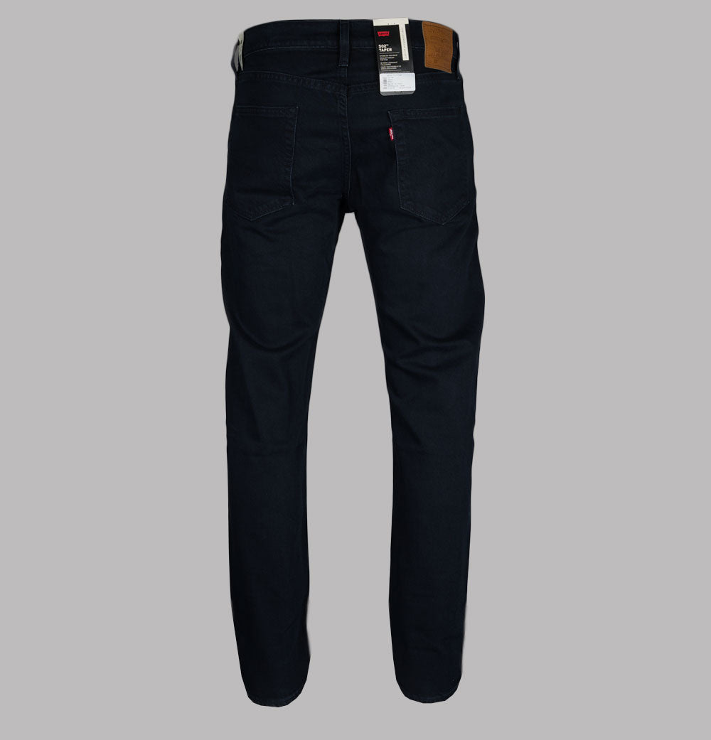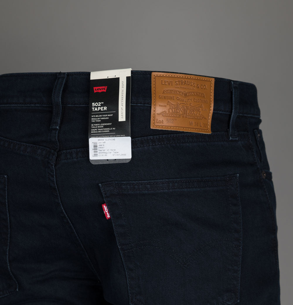 Levi's® 502™ regular taper fit jeans in Master Of None. Dark Indigo denim. Classic 5 pocket style. Zip fly with a metal signature Levi's® branded top button. Iconic Levi's® Red tab on the back pocket. Brown leather branded patch on the back. Tonal stitch detail. Metal branded trims. Sits below the waist with a regular fitting thigh and slightly tapered legs. 67% cotton, 32% lyocell, 1% elastane.
