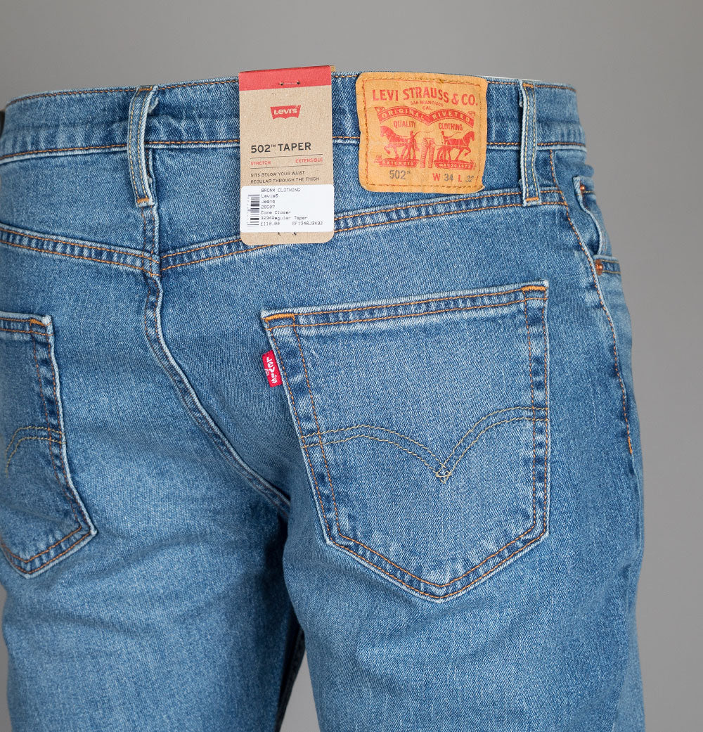 Levi's® 502™ regular taper fit jeans in Come Closer. Light wash denim. Classic 5 pocket style. Zip fly with a metal signature Levi's® branded top button. Iconic Levi's® Red tab on the back pocket. Brown leather branded patch on the back. Gold stitch detail. Metal branded trims. Sits below the waist with a regular fitting thigh and slightly tapered legs. 99% cotton, 1% elastane.