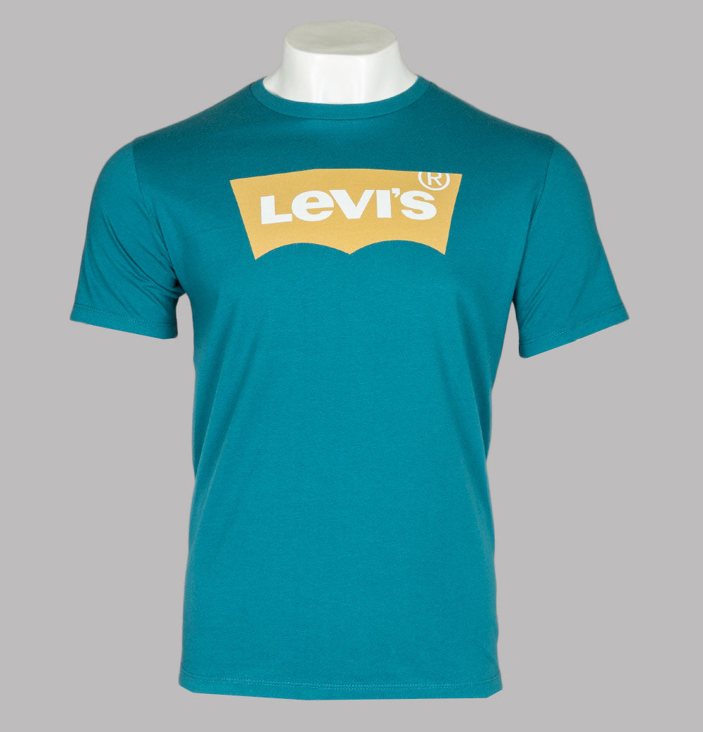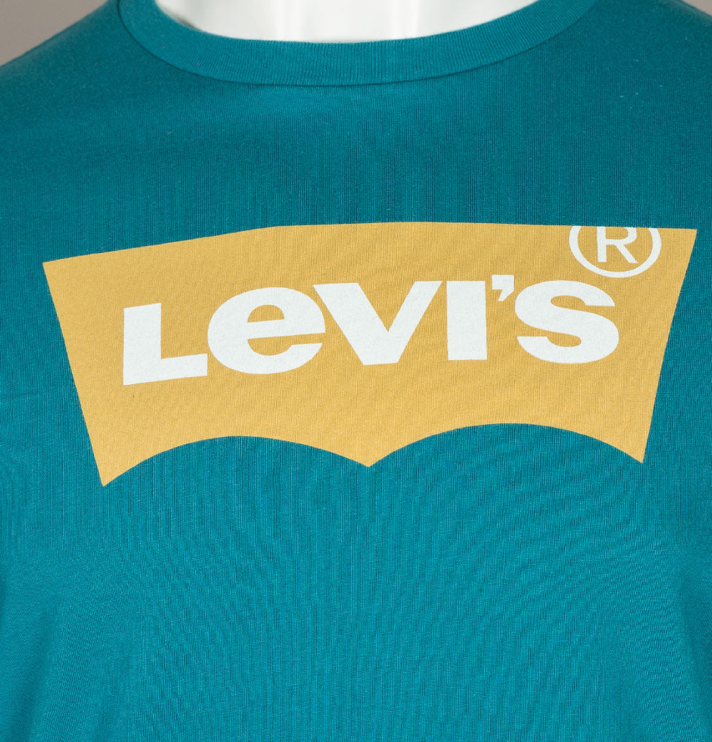Levi's® short sleeve classic housemark graphic t-shirt. Colonial Blue premium cotton jersey fabric. Ribbed crew neck. Signature Levi's® housemark logo printed on the chest. Levi's® Red tab embroidered on to the seam. Regular fit. 100% cotton.
