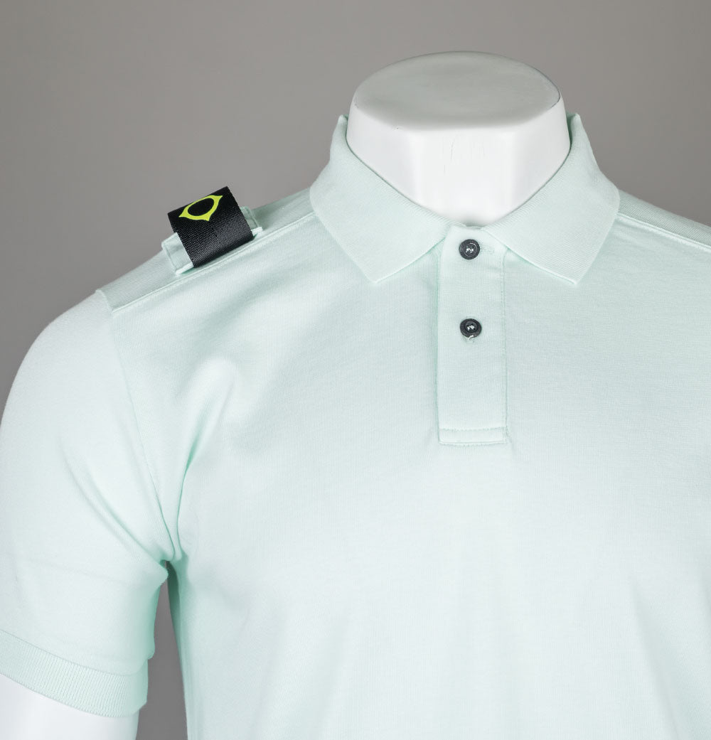 Ma.Strum short sleeve Volt jersey polo shirt in Frost. Soft cotton jersey fabric. Ribbed collar and sleeve cuffs. Two button placket with signature Ma.Strum branded buttons. Detachable fluorescent Ma.Strum compass ID badge on the shoulder. Regular fit. 100% cotton.