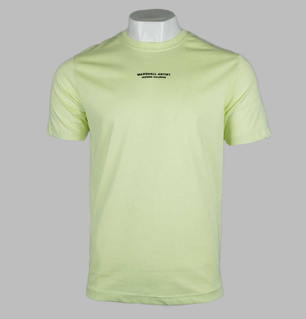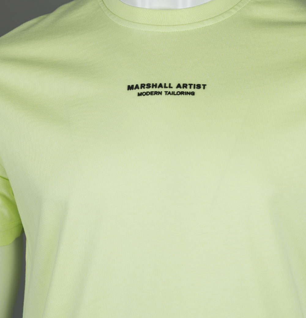 Marshall Artist short sleeve Injection t-shirt. Shadow Lime premium cotton jersey fabric. Ribbed crew neck. Rubberised signature Marshall Artist branding on the chest in Black. Side slits on the hem. Tonal stitch detail. Relaxed fit. 100% cotton.