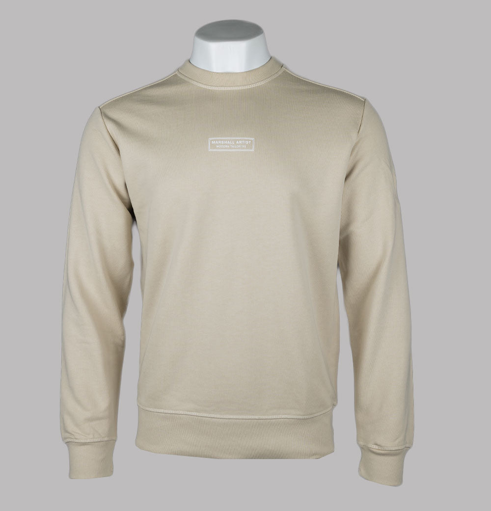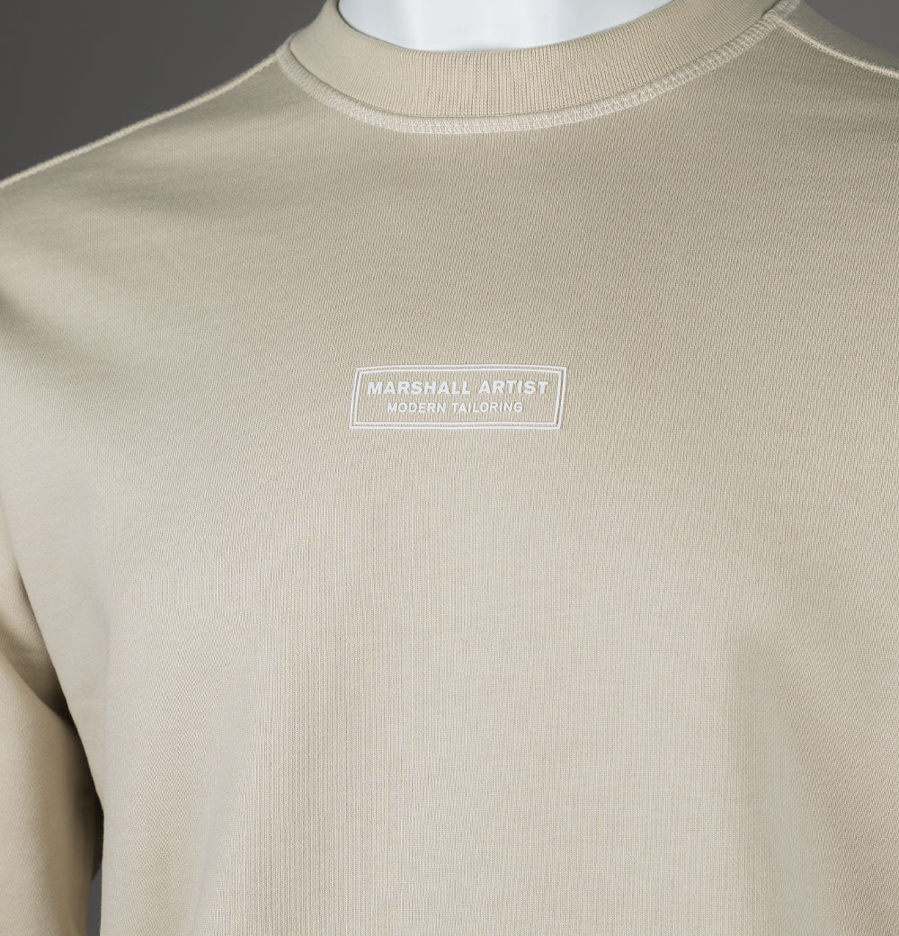 Marshall Artist Siren box logo sweatshirt. Sandstone loopback cotton jersey fabric. Ribbed crew neck, sleeve cuffs and hem. Rubber Marshall Artist box logo on the chest. Rubber Marshall Artist Siren badge on the sleeve. Tonal stitch detail. Regular fit. 100% cotton.