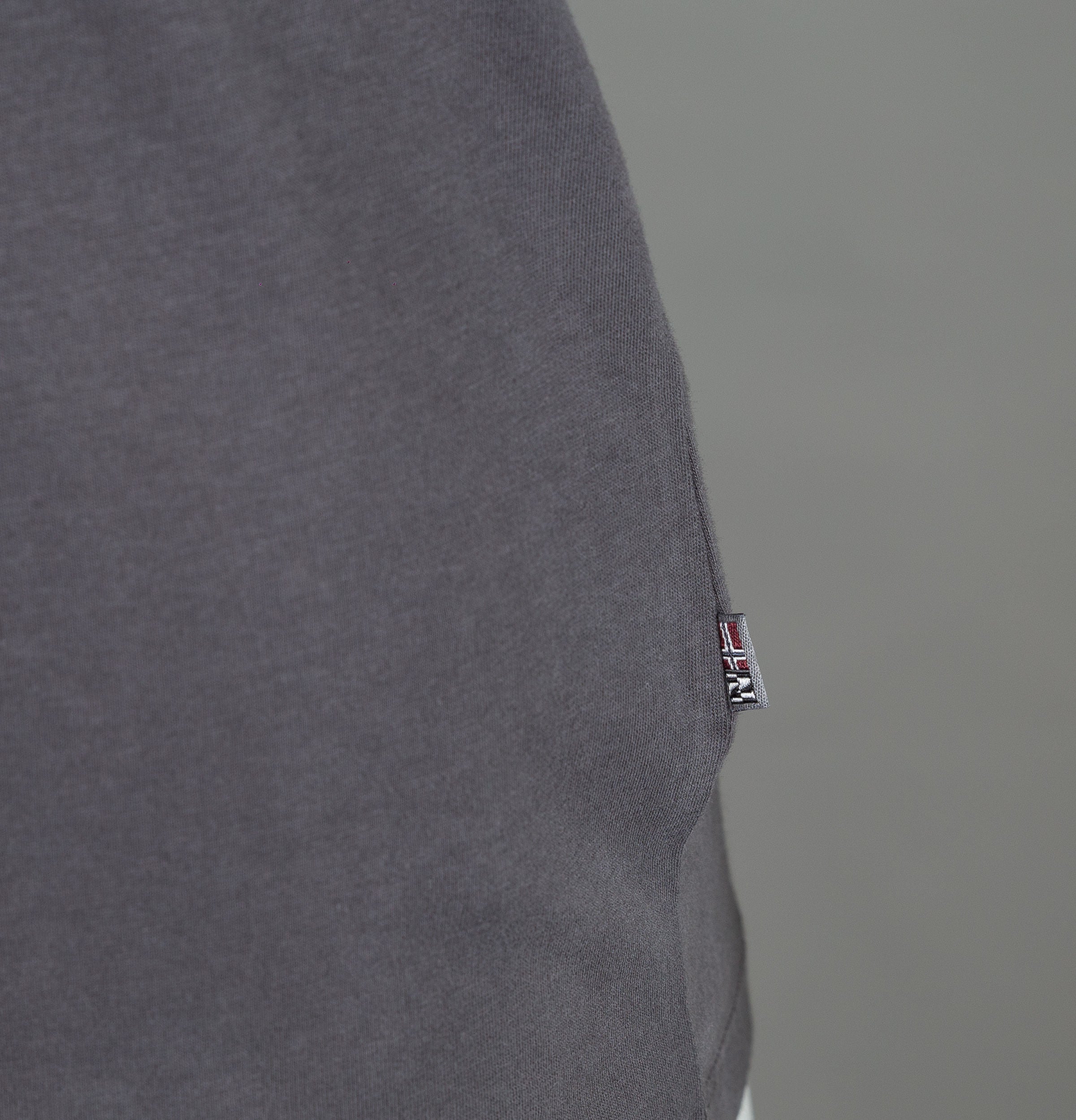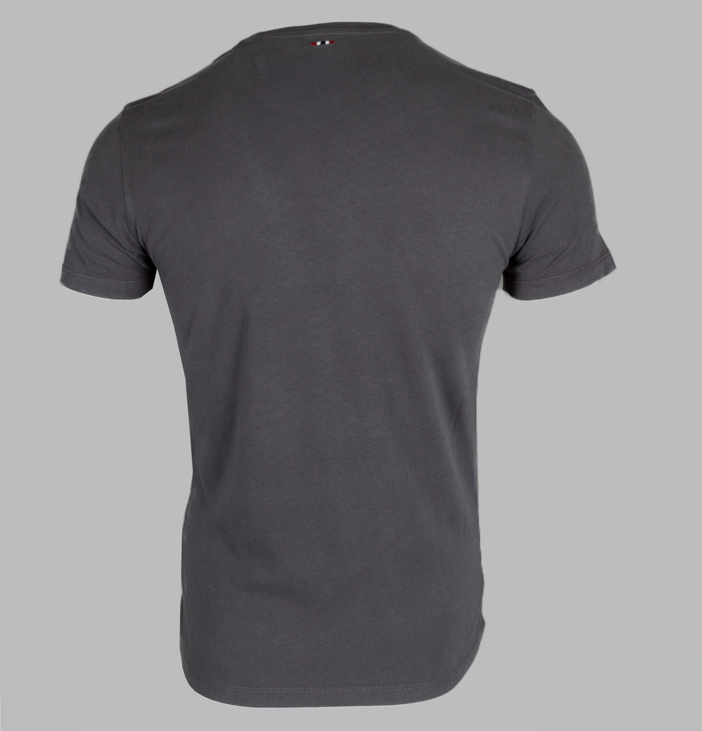 Napapijri Solin short sleeve t-shirt. Dark Grey soft brushed cotton. Ribbed crew neck. Napapijri signature printed logo on the chest with embroidered elements badge. Small Napapijri tag on the seam. Embroidered stripe detail on the back of the neck. Cut in a slim fit. 100% cotton.