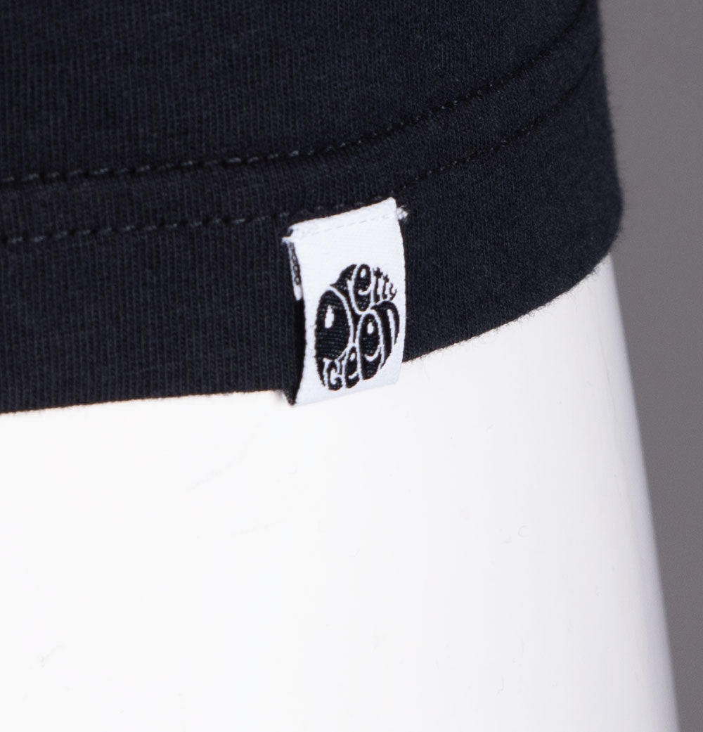 Pretty Green short sleeve Alloway Paisley logo t-shirt. Black soft cotton jersey fabric. Classic ribbed crew neck. Pretty Green Alloway Paisley logo printed on the chest. Small embroidered Pretty Green branded tag on the hem. Tonal stitch detail. Slim fit. 100% cotton.