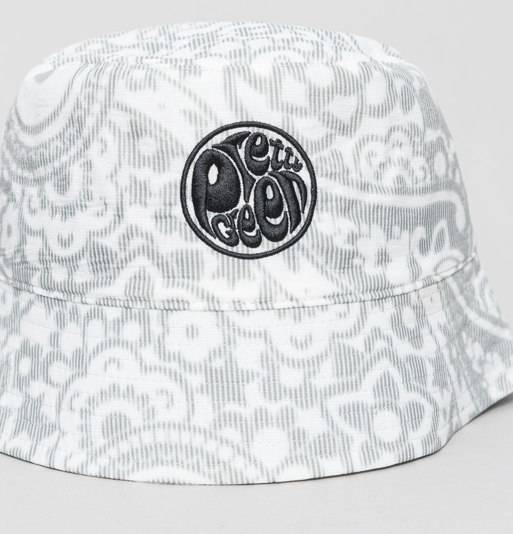 Pretty Green Anchorage Paisley print bucket hat. Textured lightweight soft nylon fabric. Classic fisherman style. All over Anchorage Paisley print. Embroidered Pretty Green logo on the front panel. 100% nylon.