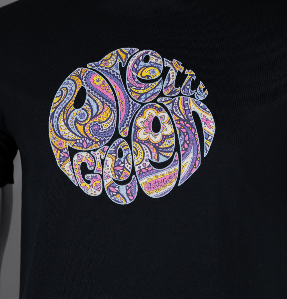 Pretty Green Festival Paisley Print Logo T-Shirt Black