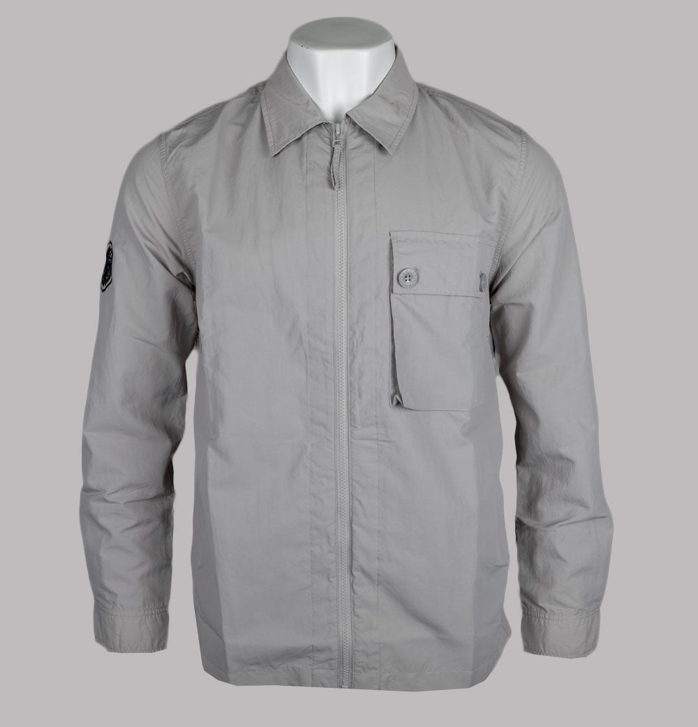Pretty Green Heaton overshirt in Grey. Lightweight nylon fabric with a crinkle finish. Front zip up fastening. Pointed collar. Button chest pocket. Embroidered Pretty Green logo on the sleeve. Paisley lining. Regular fit. 100% nylon.