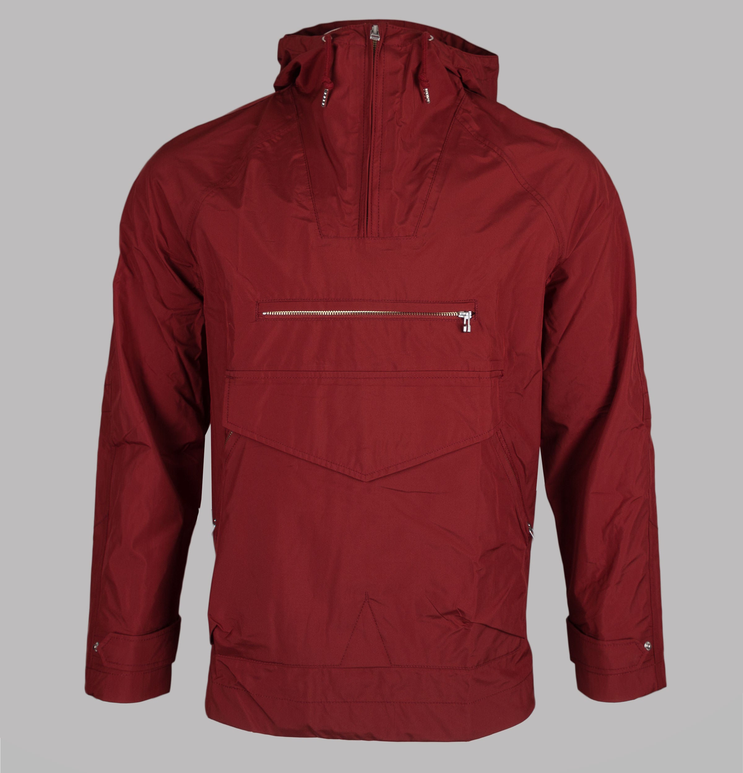 Pretty Green Water Resistant Overhead Hooded Jacket Dark Red