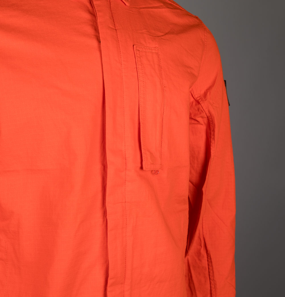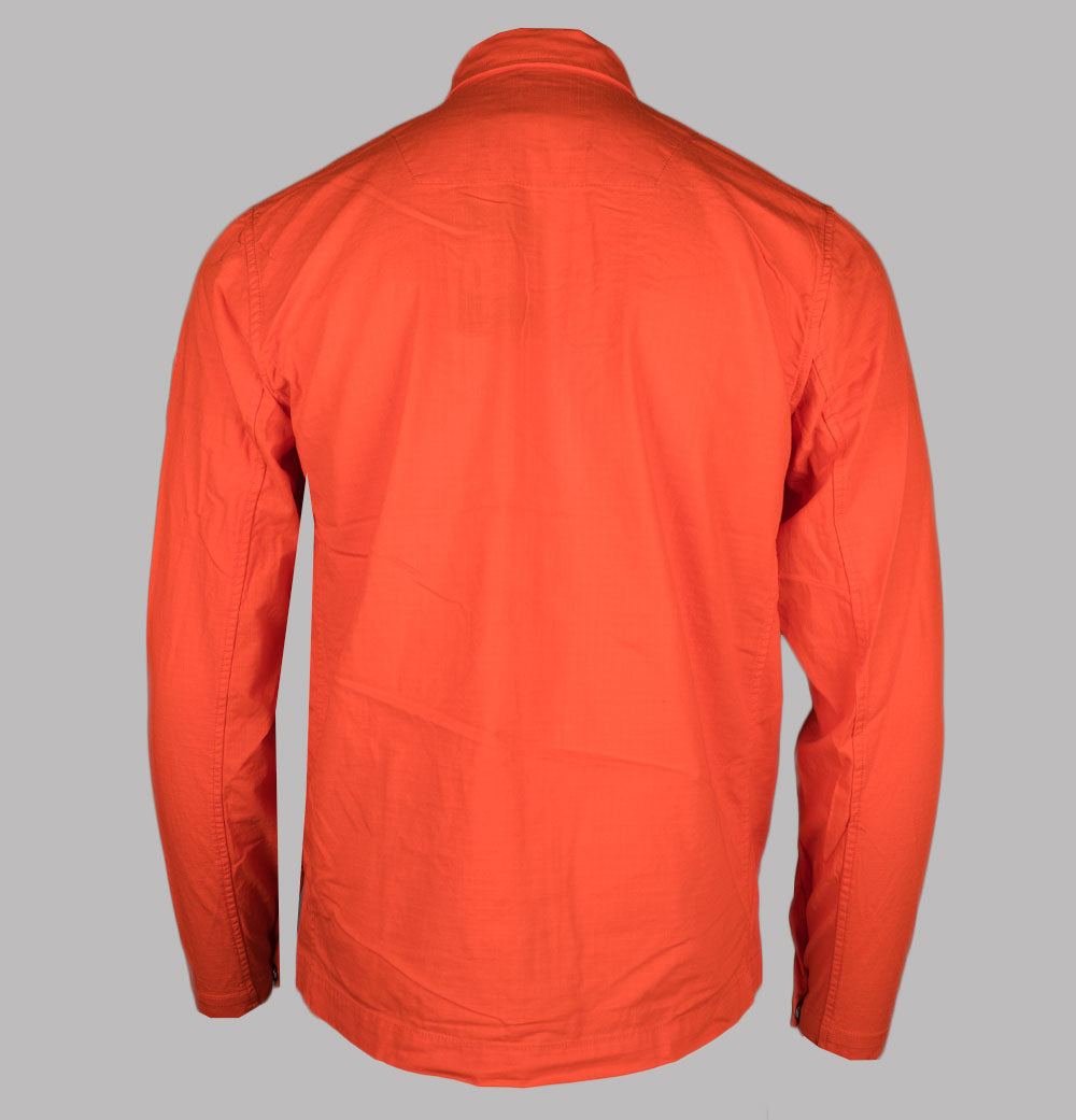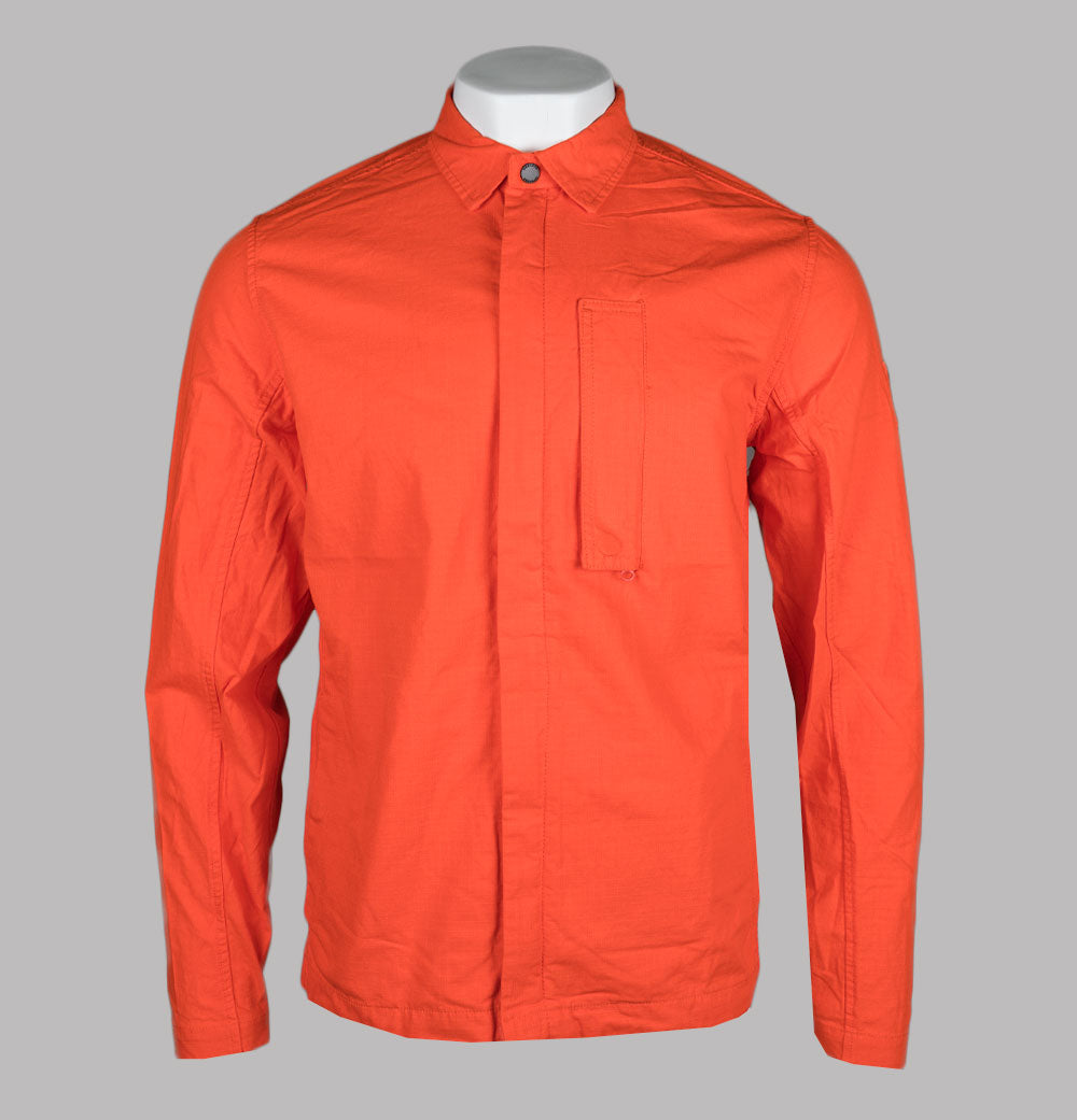 Weekend Offender Porter overshirt. Pure Orange cotton ripstop fabric. Concealed front zip up fastening with a top and bottom press stud. Pointed collar. Concealed zip pocket on the chest. Side entry press stud pockets. Removable velcro Weekend Offender badge on the sleeve. Button sleeve cuffs. Regular fit. 100% cotton.